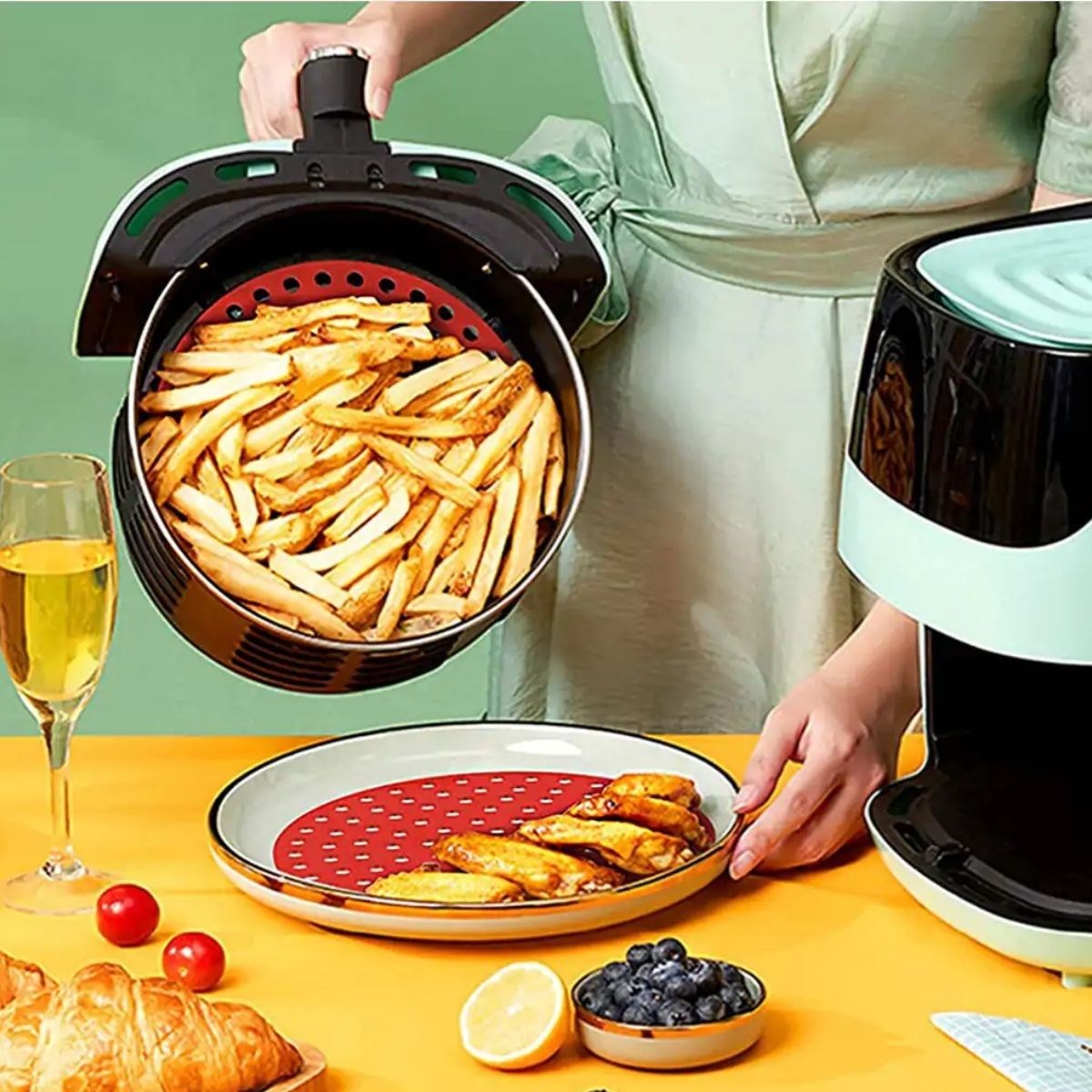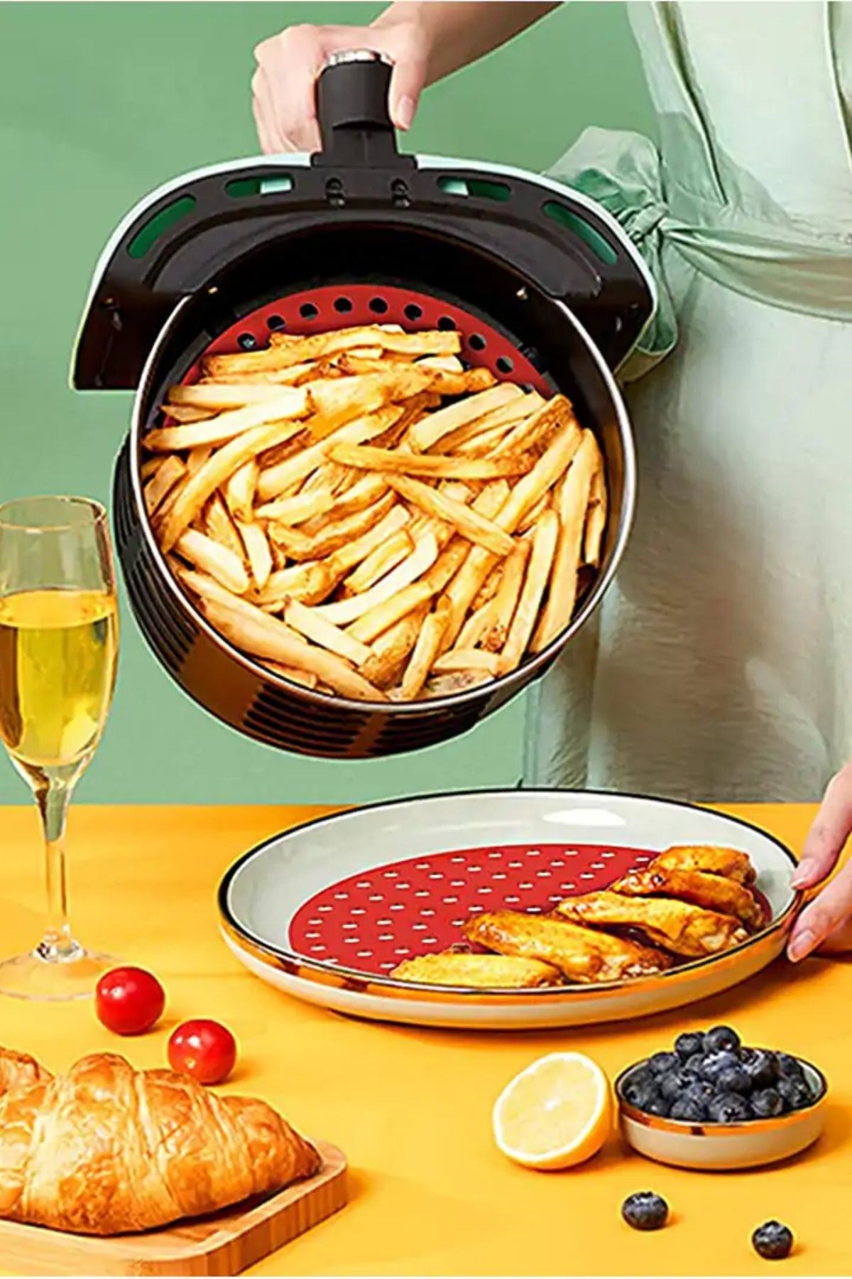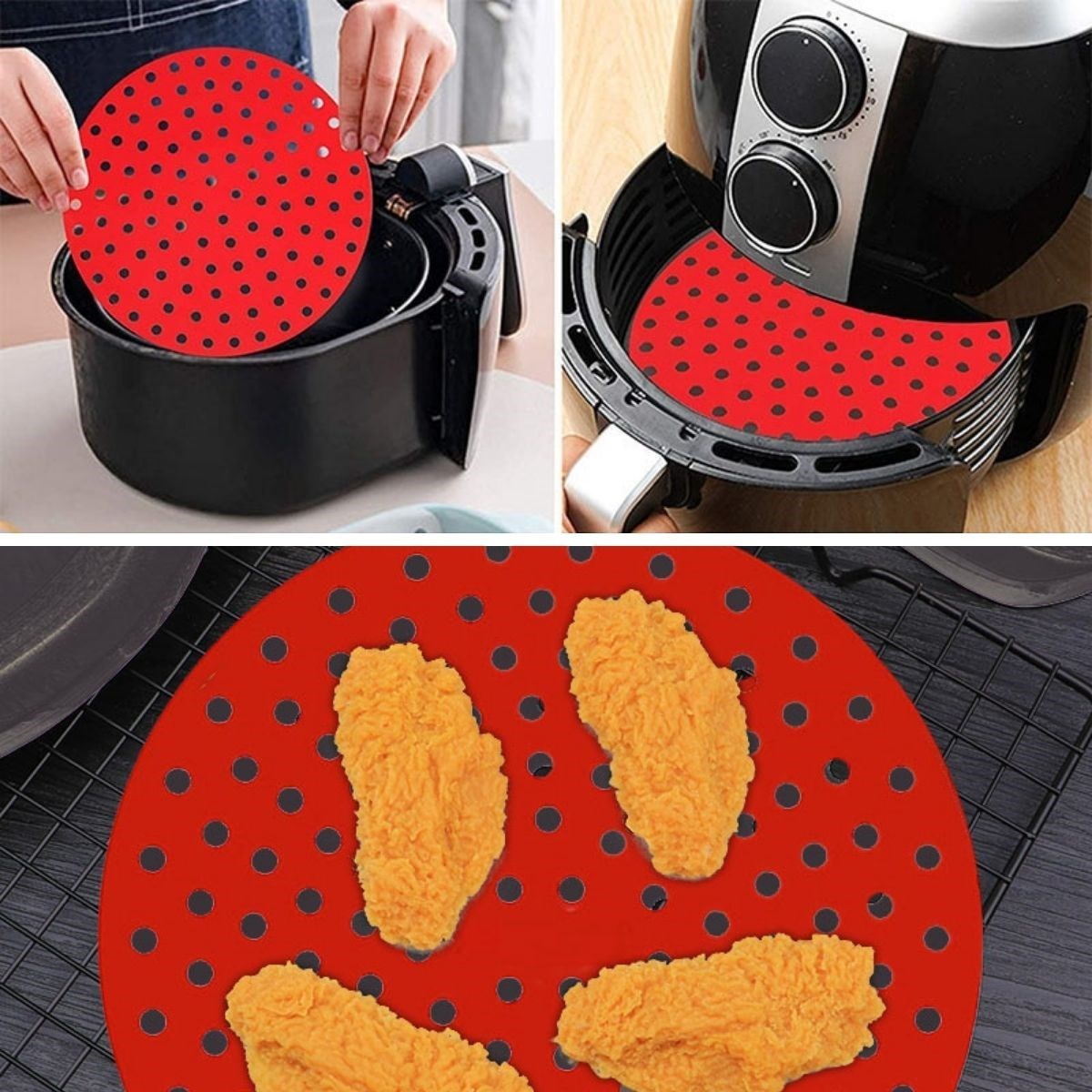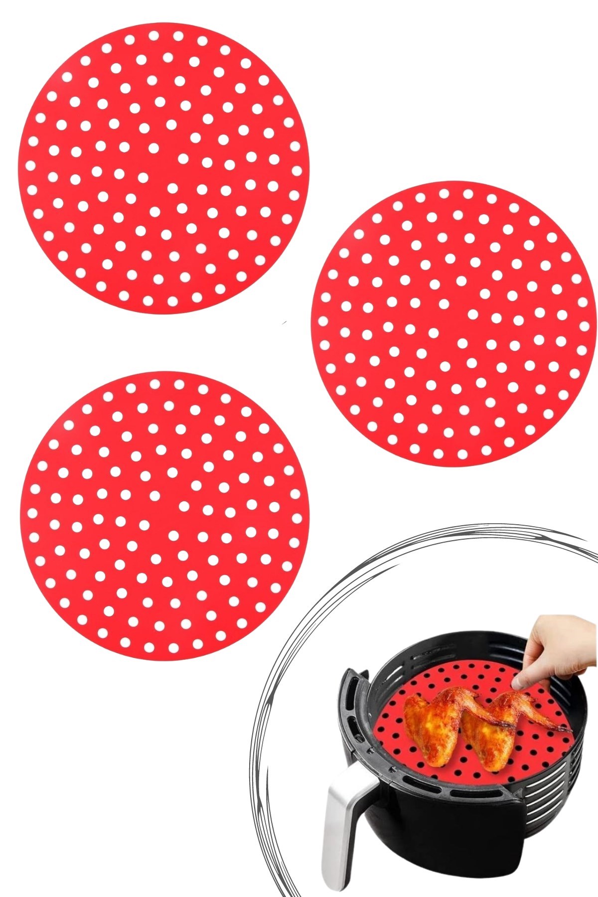 Airfryer pişirme matı ile yemek yapmak hiç bu kadar kolay olmamıştı. Yanmaz, yapışmaz özelliği ile tekrar kullanıma uygundur. Slikon gövdesi koku yapmaz, herhangi bir alerji oluşturmaz.