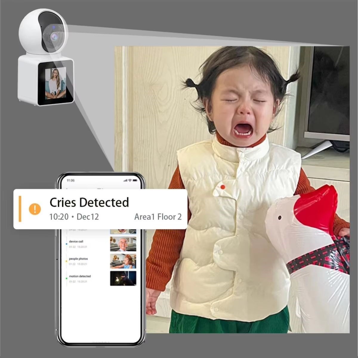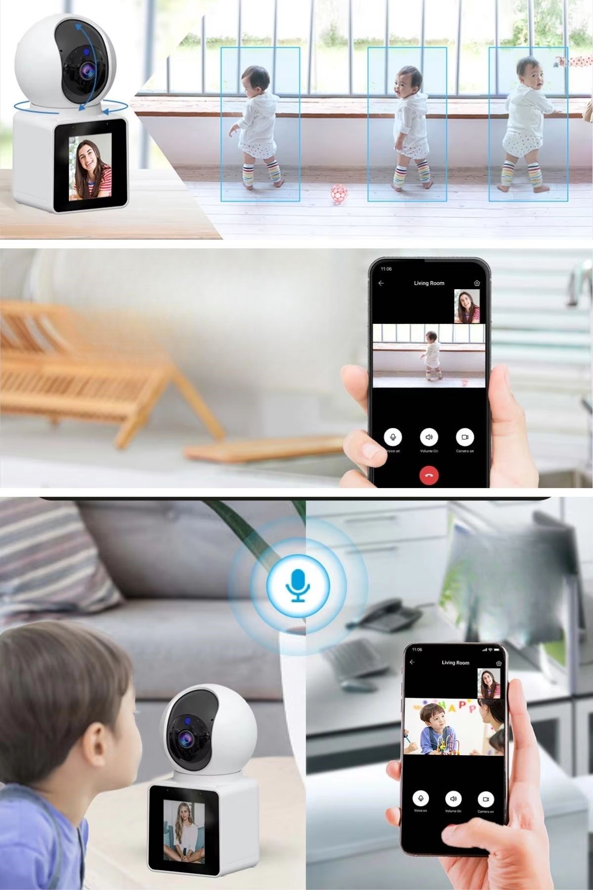 İki Yönlü Sesli İletişim: Dahili mikrofon ve hoparlör sayesinde kamera üzerinden karşılıklı sesli iletişim kurabilir, çocuklarınızla, evcil hayvanlarınızla veya misafirlerle uzaktan iletişim sağlayabilirsiniz.