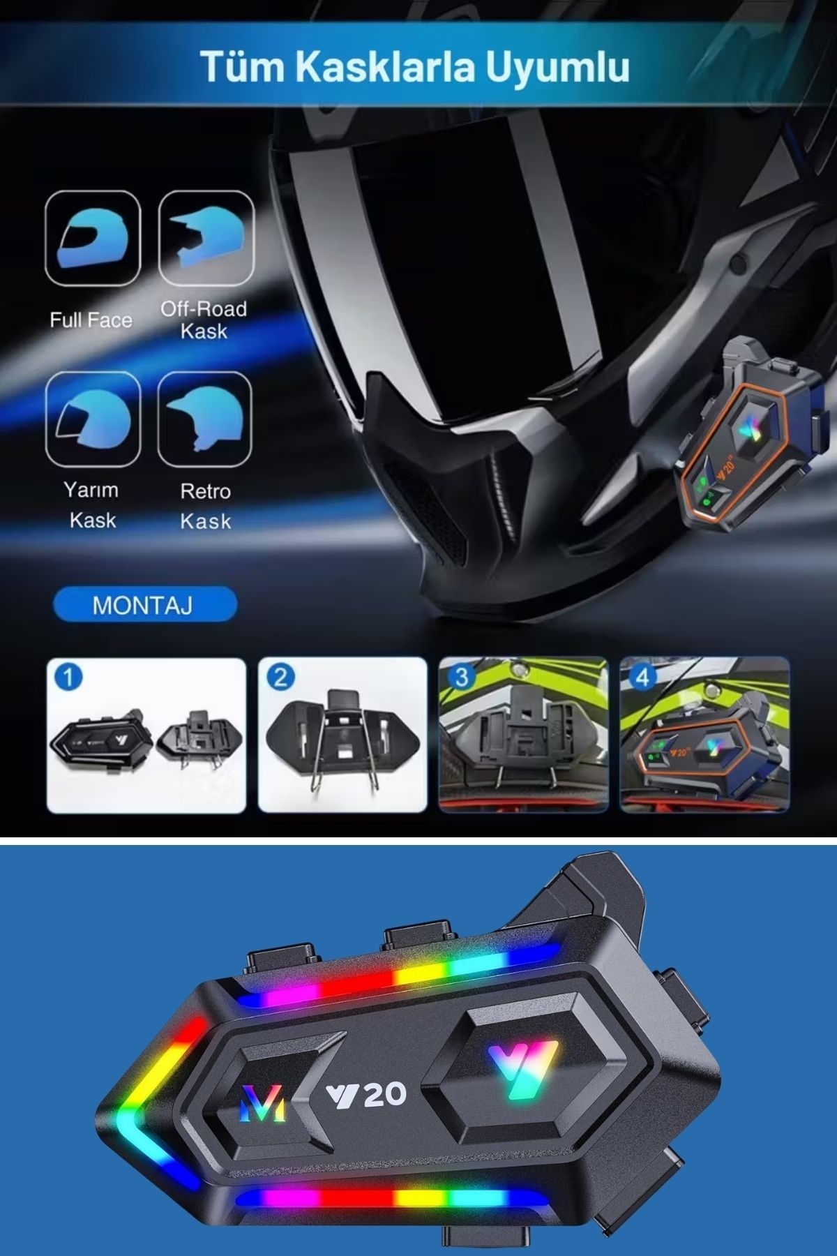 Motosiklet kaskına kolayca monte edilebilen kompakt yapısıyla konforlu bir kullanım sağlar.