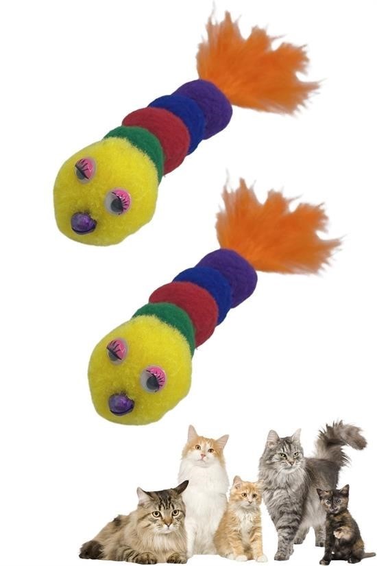 BUFFER® Yumuşacık İpli Tırtıl Şeklinde Rengarenk Sevimli Evcil Hayvan Oyuncağı