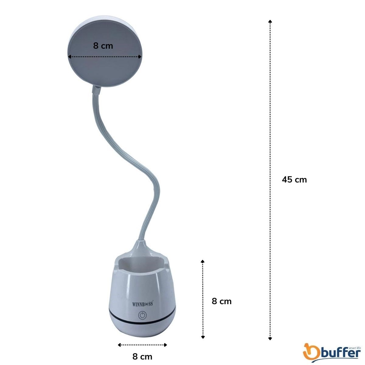 Paket İçeriği: 1x BUFFER® Kalemlikli ve Telefon Tutacaklı Şarjlı Dokunmatik LED Masa Lambası