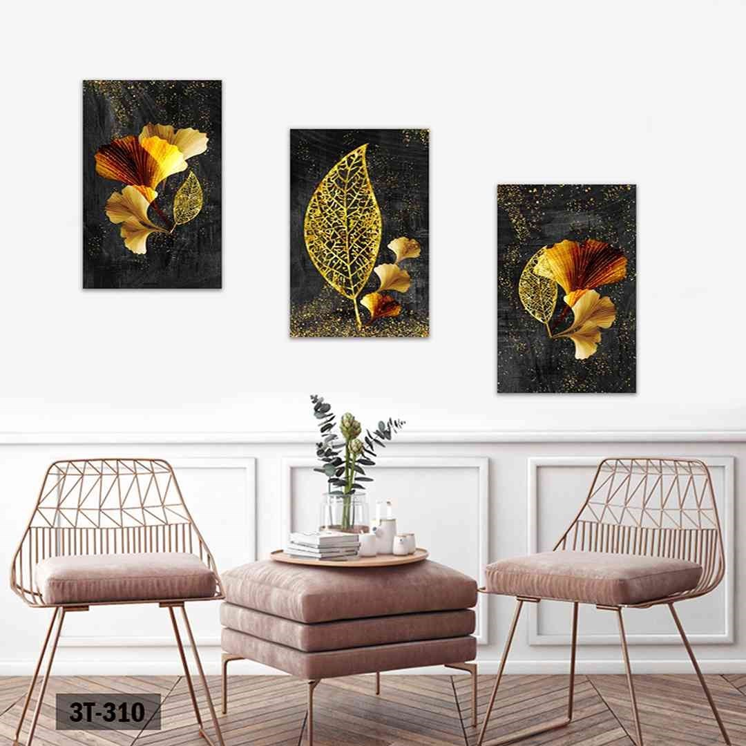 3 Parça Gold Yapraklar Mdf Tablo - 3T-310 30X40