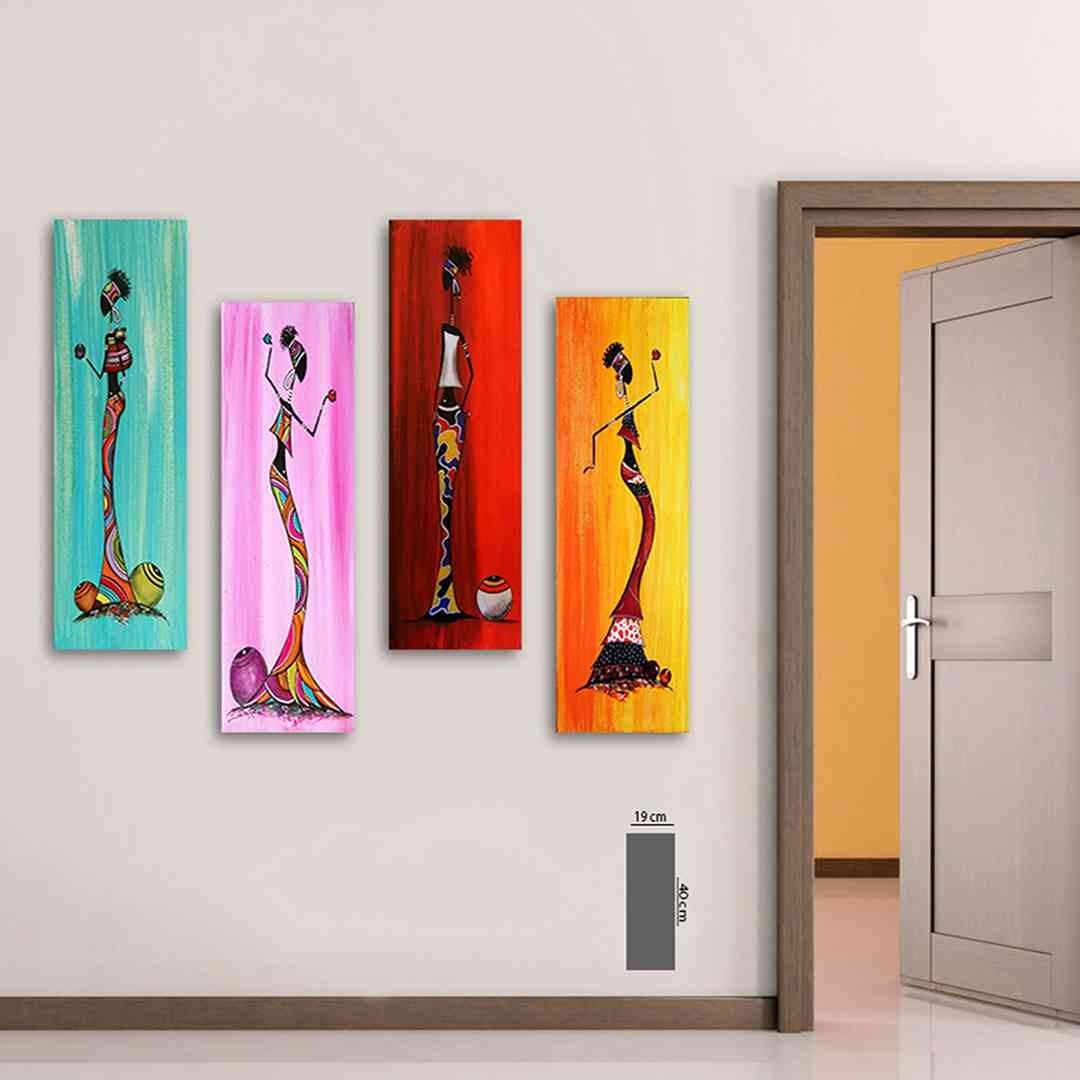 4 Parça İllüstrasyon Afrikalı Kadınlar Mdf Tablo - 4Dikey-51 19X40