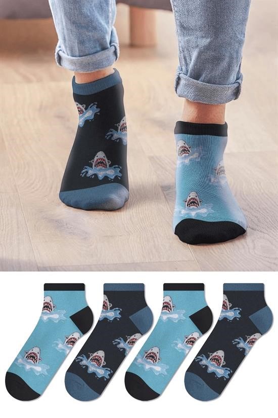 4'lü Köpekbalığı Desenli Patik Çorap Seti 36-40