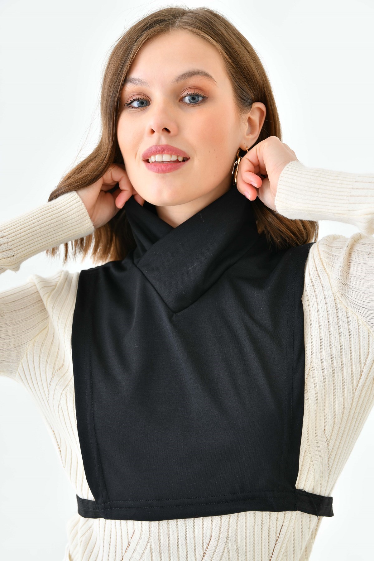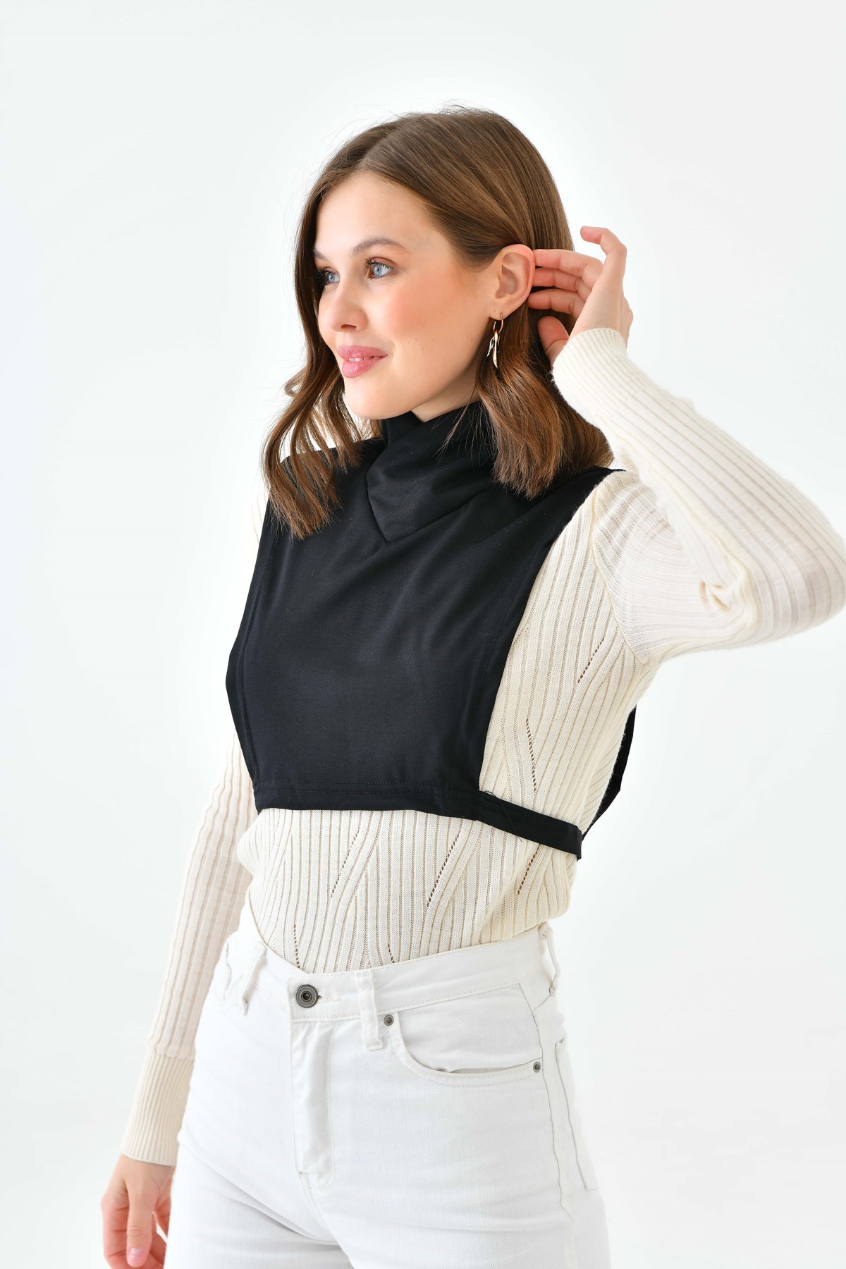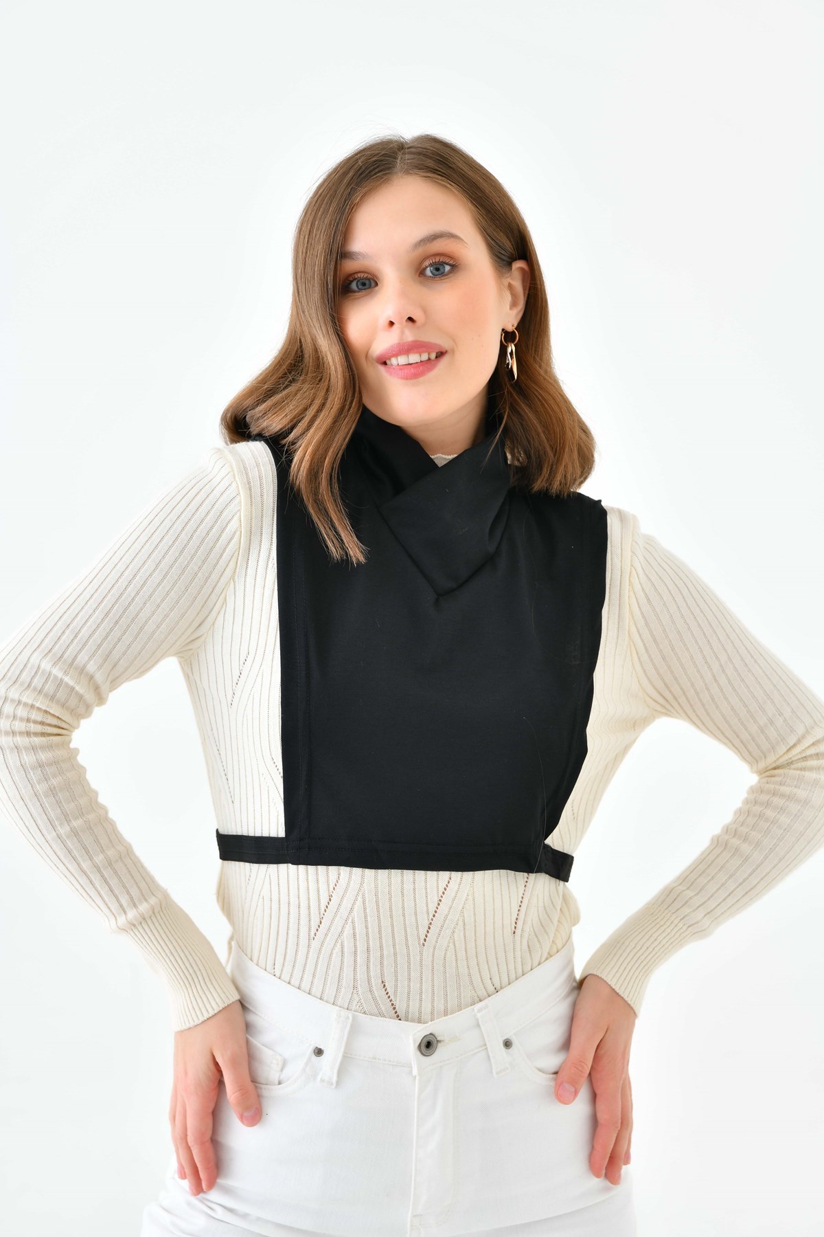 Siyah Çapraz Yaka Kolsuz Boyunluk, Tesettür Boyunluk, Tesettür Giyim, Boyunluk, Kolsuz Boyunluk, Boyun Örtüsü