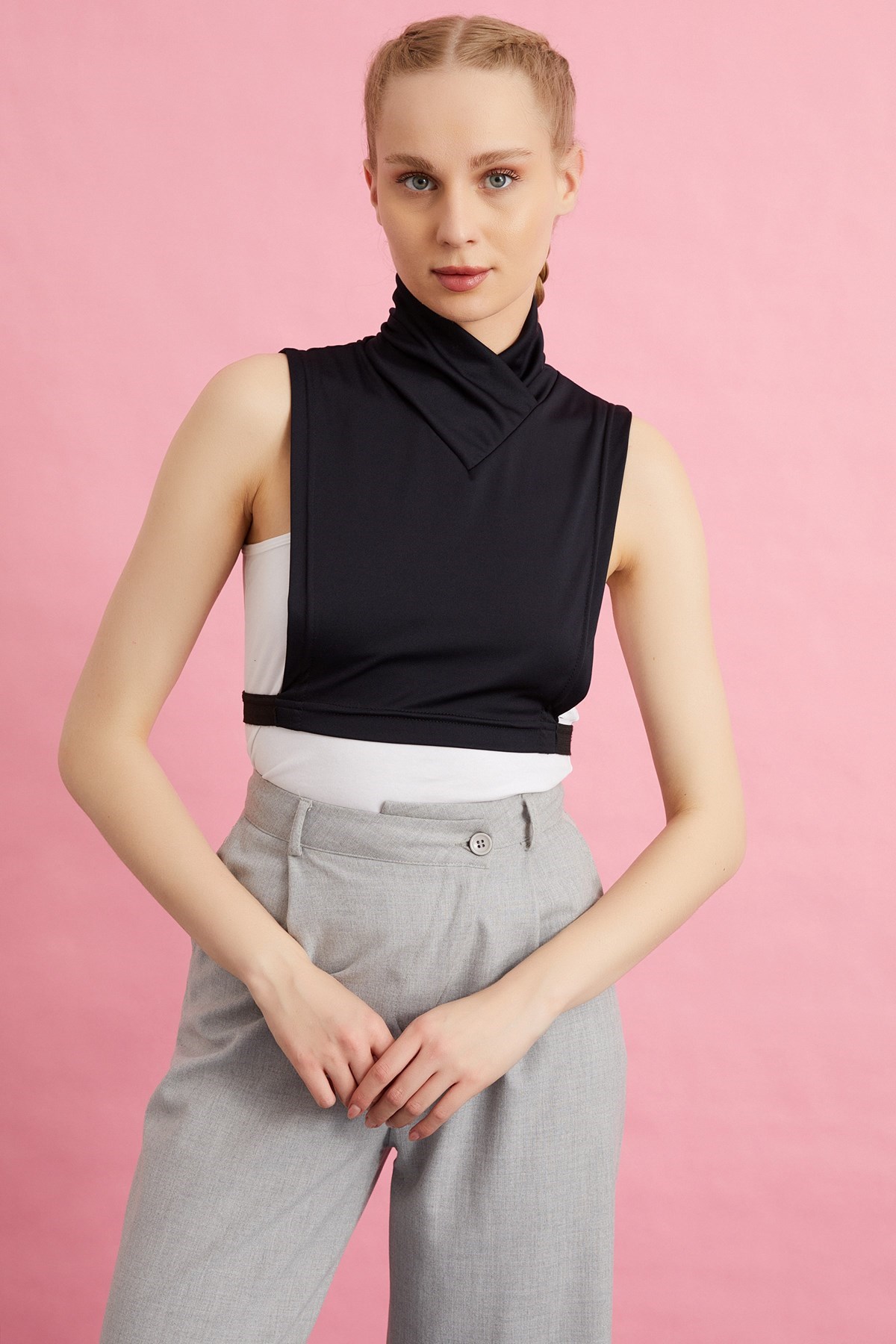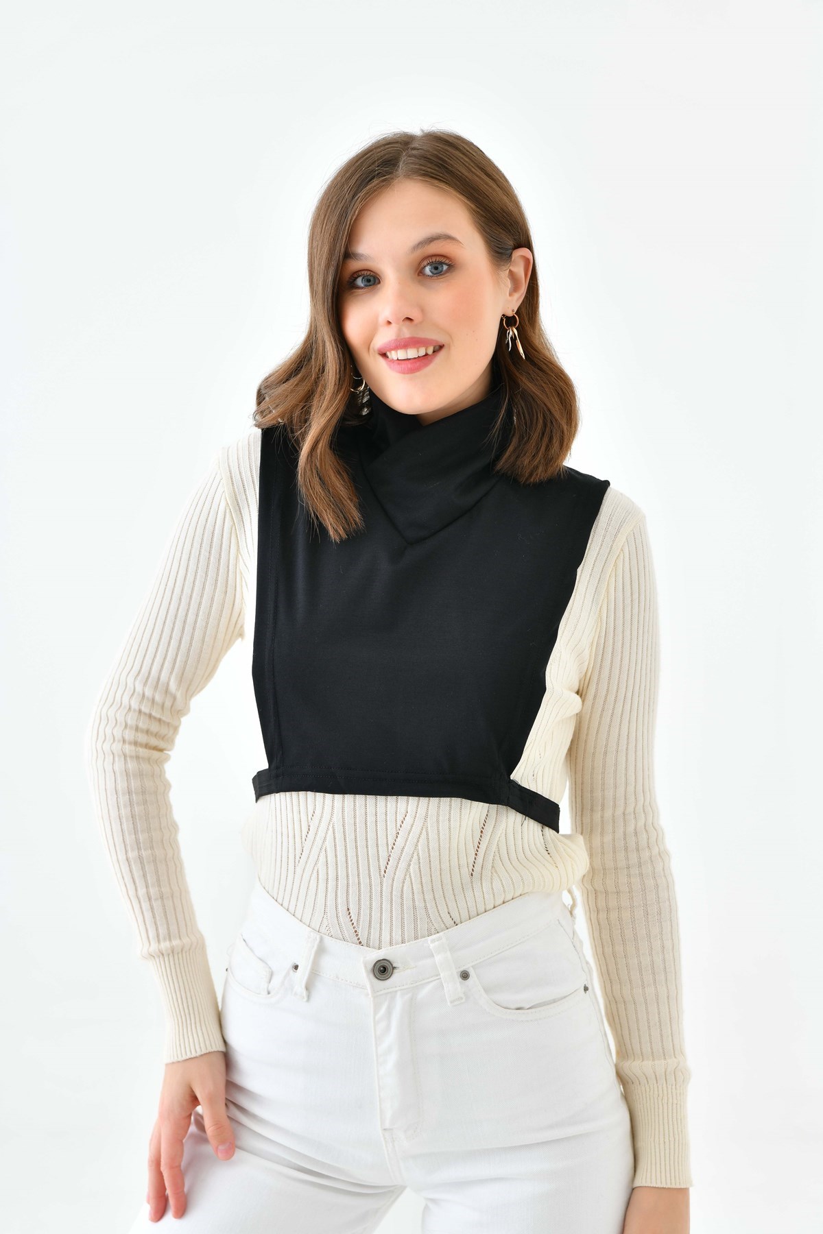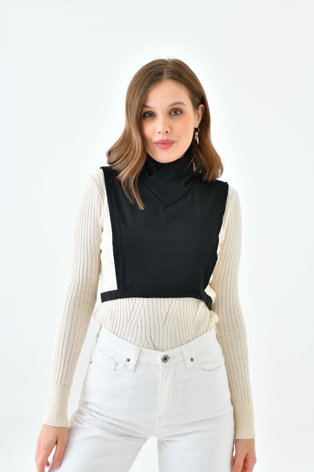 Siyah Çapraz Yaka Kolsuz Boyunluk, Tesettür Boyunluk, Tesettür Giyim, Boyunluk, Kolsuz Boyunluk, Boyun Örtüsü