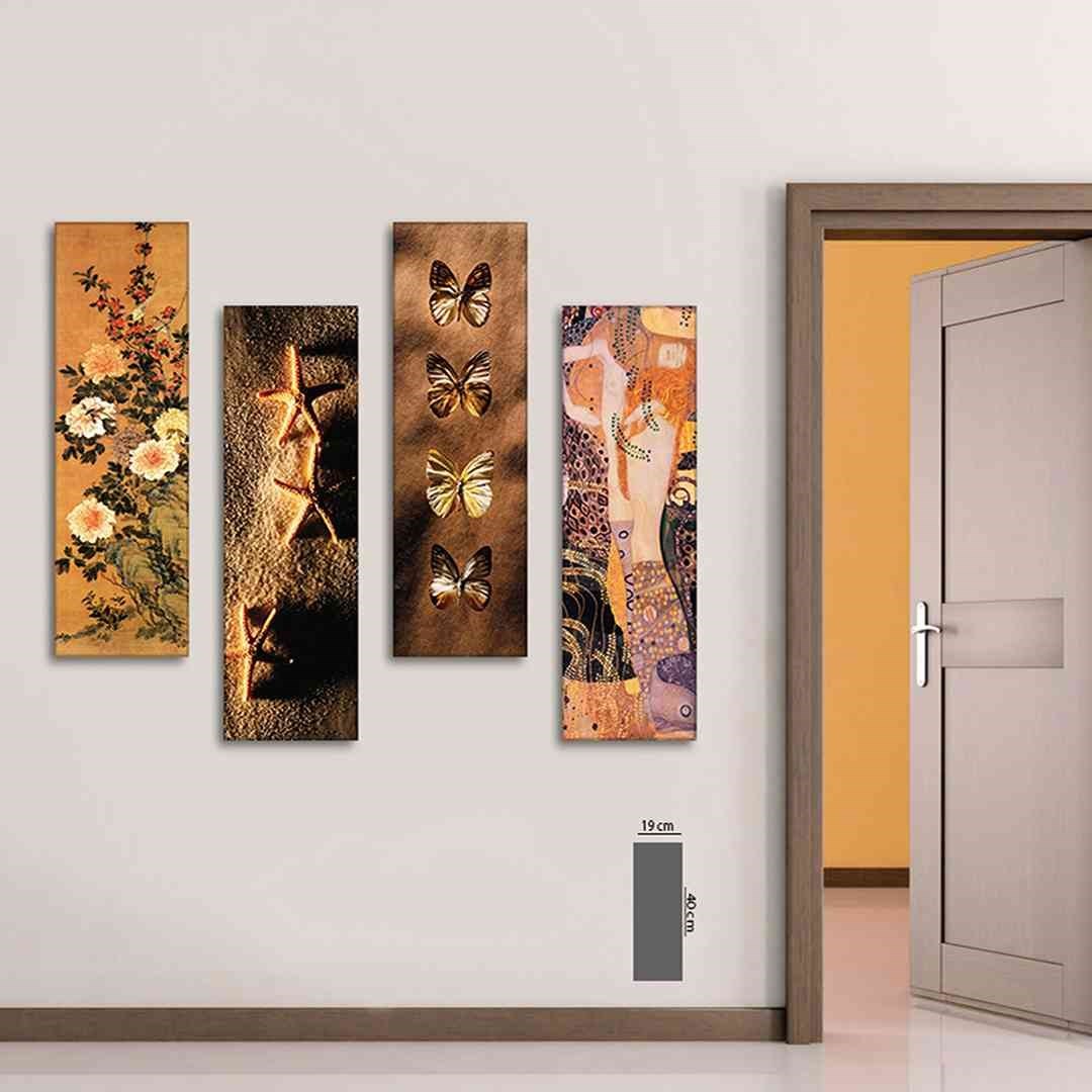 4 Parça Dekoratif Çiçekler Mdf Tablo - T-4Dikey-09 19X40