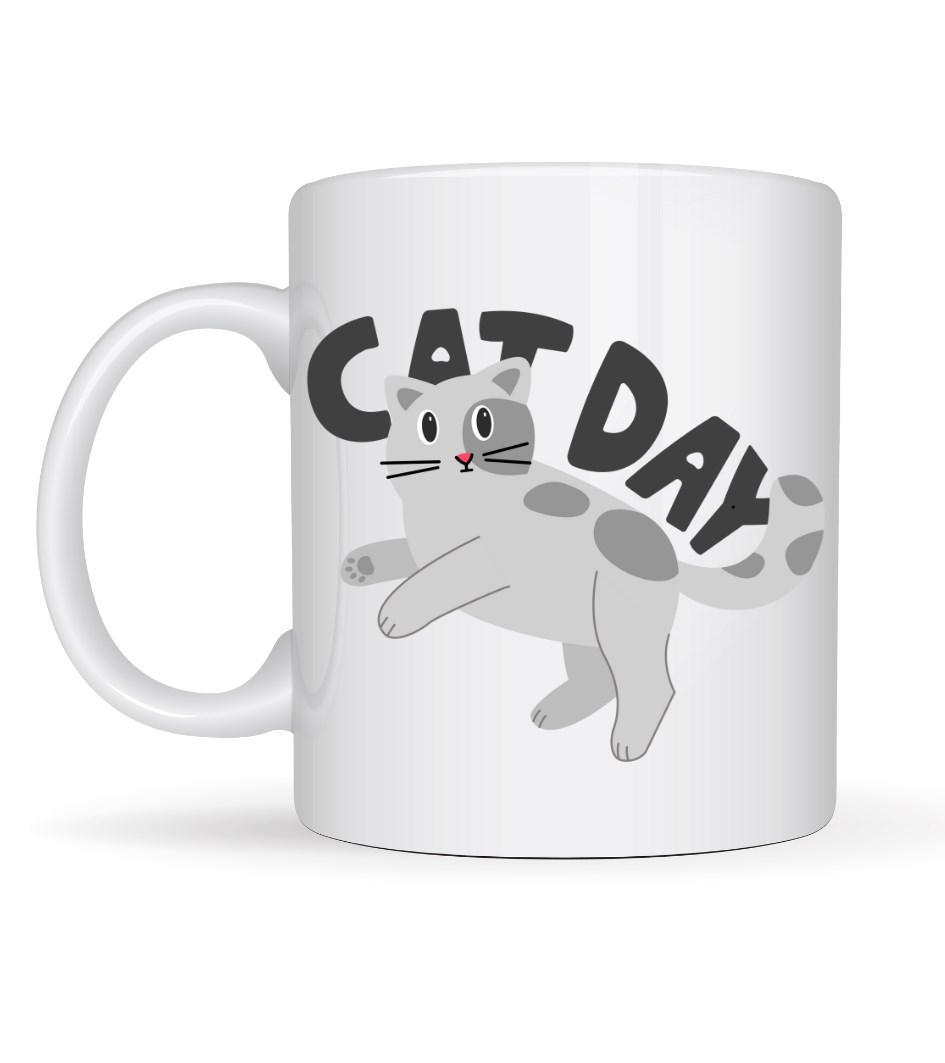 Üzerindeki sevimli, tombul ve neşeli kedi figürü; rahatlığı, mutluluğu ve “bugün benim günüm” enerjisini yansıtıyor. “Cat Day” yazısı ise tam anlamıyla kedi sever ruhunu anlatıyor: keyif, huzur ve bolca gülümseme…