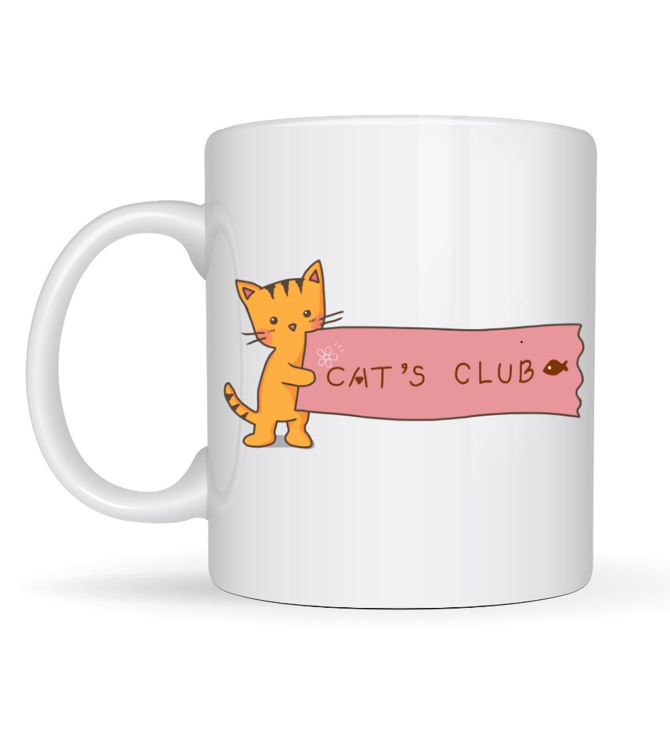 Kupada yer alan sevimli turuncu kedi, elinde tuttuğu “Cat’s Club” yazılı pankartıyla adeta seni kendi tatlı dünyasına davet ediyor. Bu tasarım; sıcaklığı, dostluğu ve kedi sevgisini yansıtan neşeli bir mesaj taşıyor.