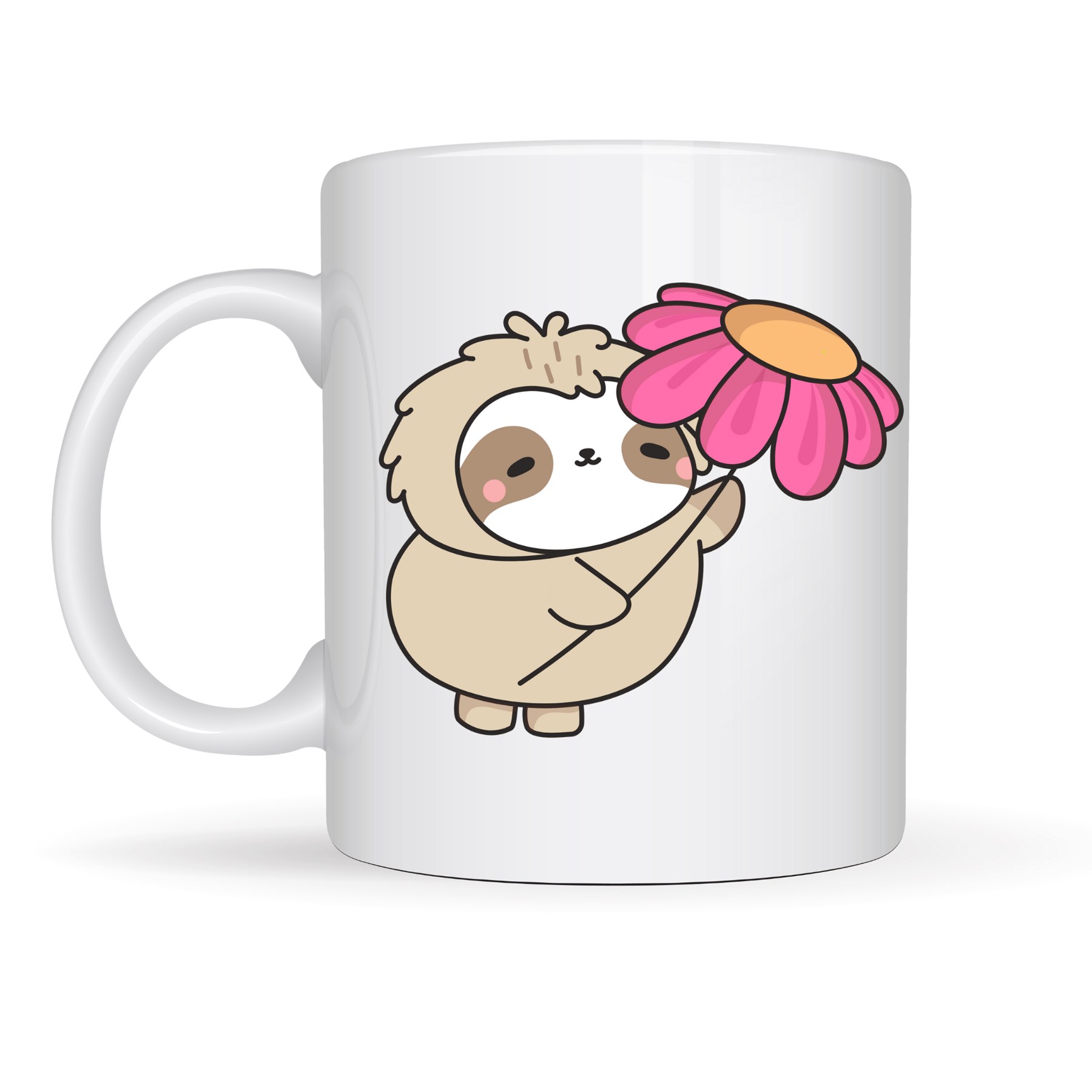 Bu sevimli çiçek tutan tembel hayvan desenli porselen kupa, günün stresini unutturacak kadar tatlı ve huzur verici bir tasarıma sahiptir.