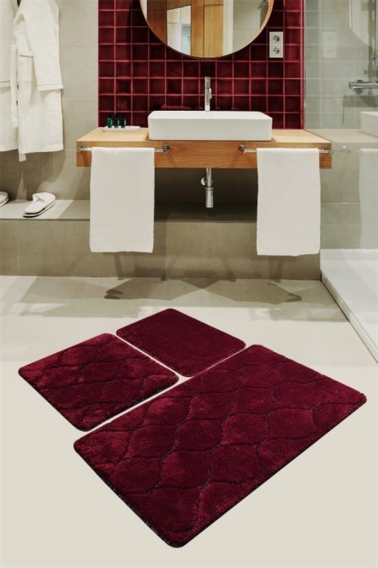 Infınıtıy Vişne 3 Lu Set Klozet Takımı, Banyo Paspas Seti Halısı-21704