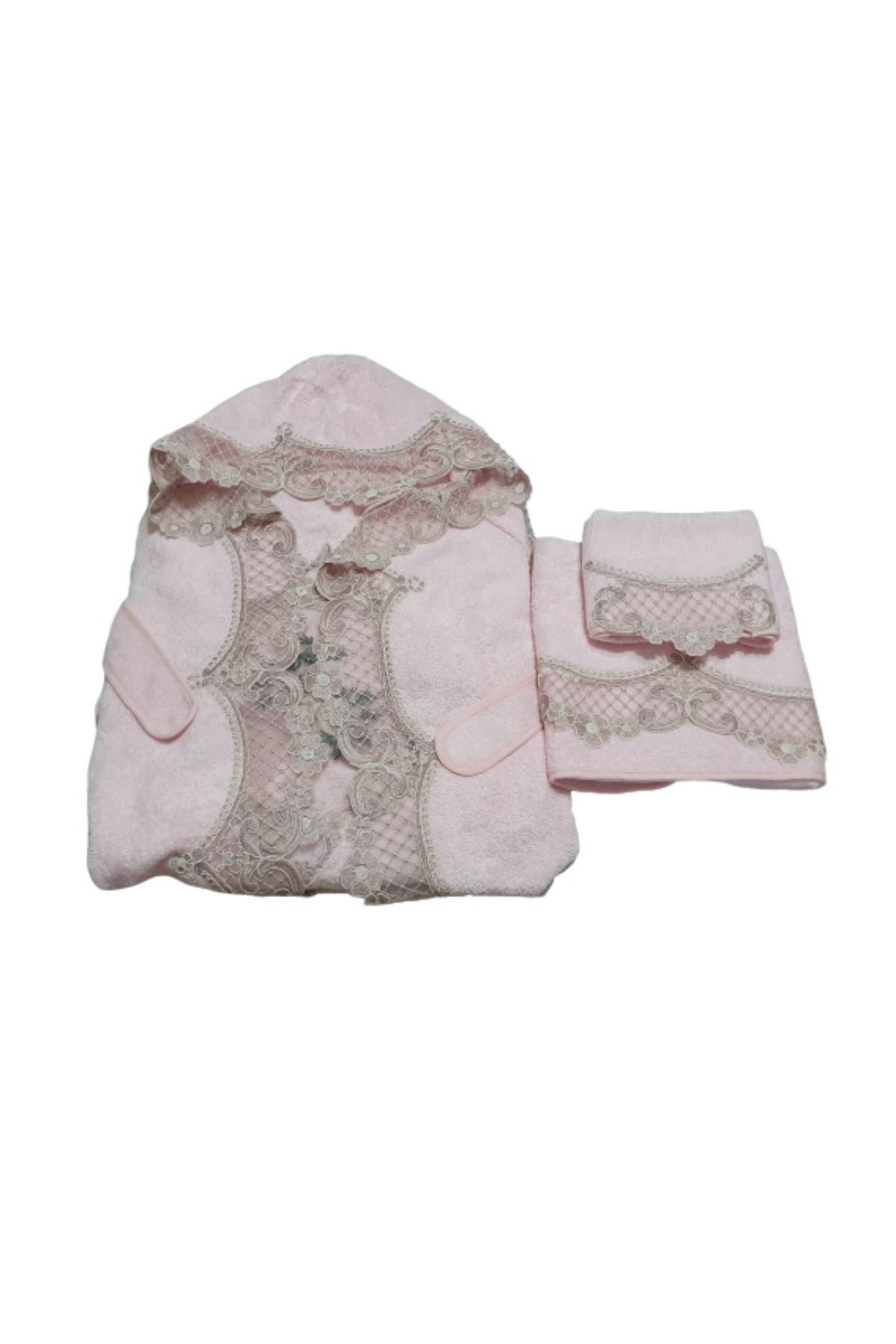 Just Home Fransız Dantelli Üçlü Kapşonlu Bayan Bornoz Seti Dolce Vita