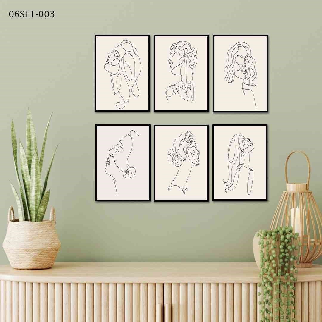 6lı Çerçeve Görünümlü Çizim Kadın MDF Tablo - 6set-003 15x20