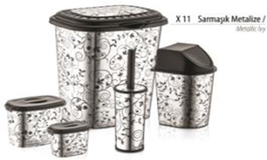 5 Pcs Metalik Banyo Seti - Karbon Metal - 38842