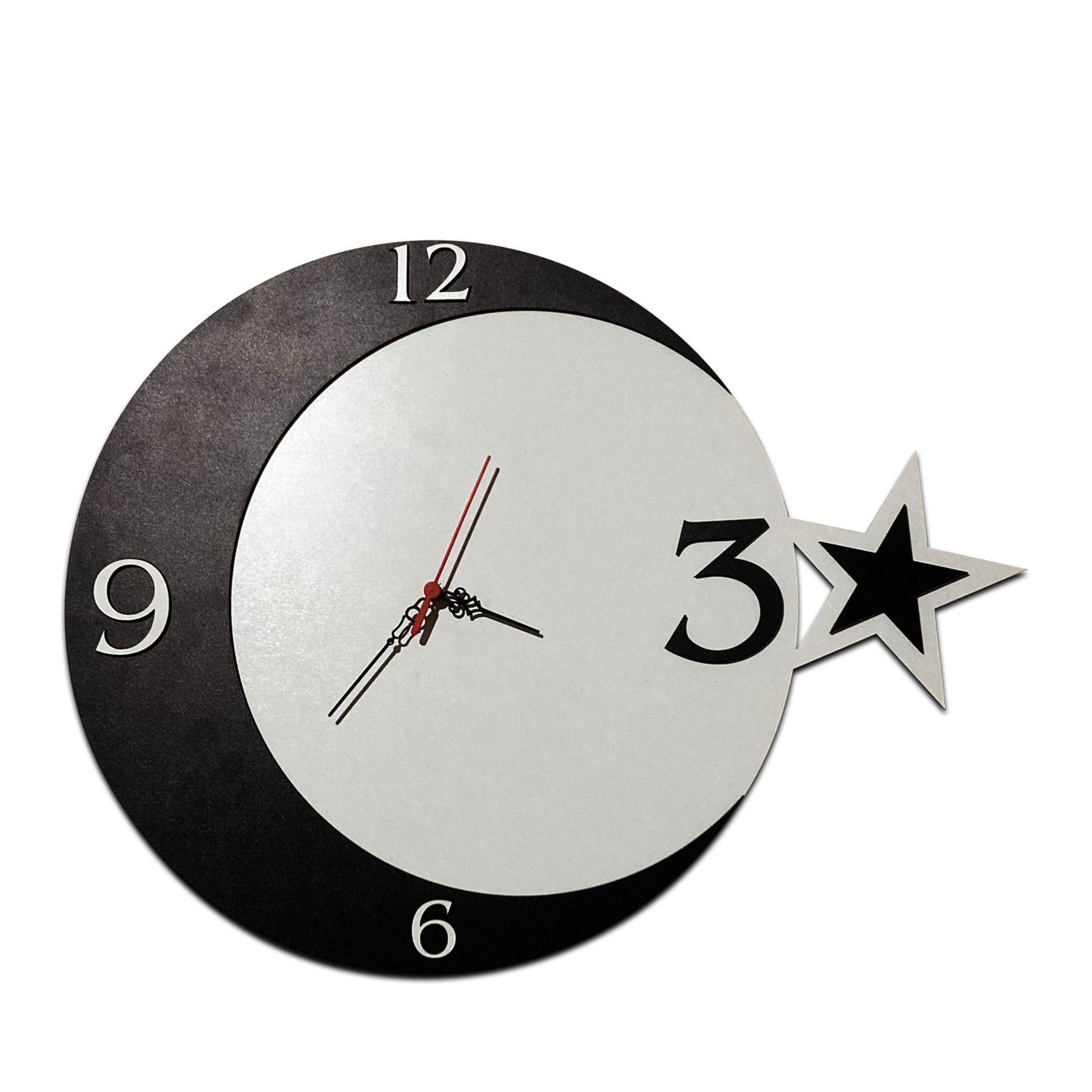 Kırmızı Ay-Yıldız Temalı Ahşap Mdf Duvar Saati