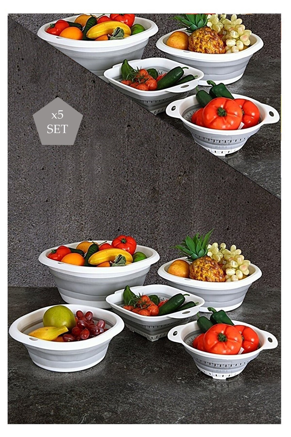 5'Li Akordiyon Katlanır Mutfak Seti - Katlanabilir Süzgeç Badya Seti