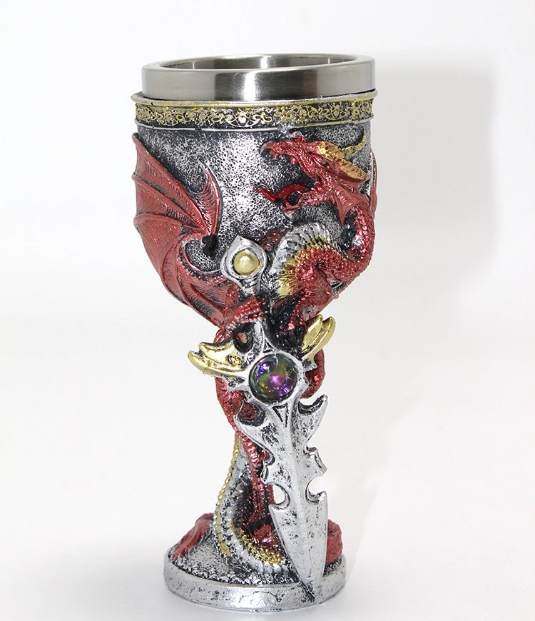 Ejderha Ve Kılıç Temalı 3d Kabartmalı Çelik Kadeh Bardak