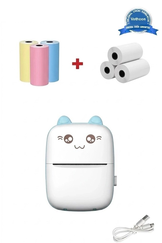 Mini Fotoğraf Yazıcı Kablosuz Etiket Yazıcı Baskı Makinesi Ios Android Uyumlu Termal Printer Mavi