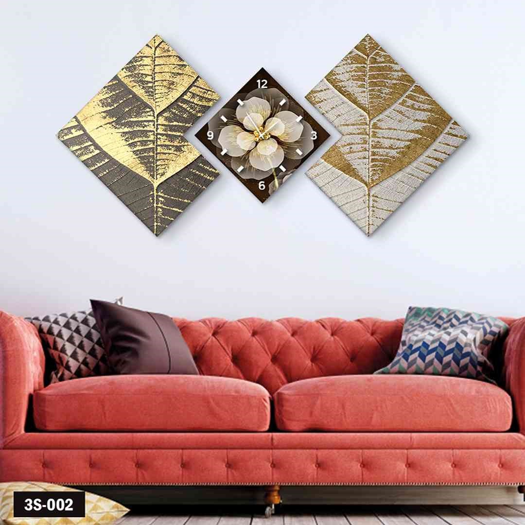 3 Parça Saatli Mdf Tablo Gold Desenler - 3S-002 160X60