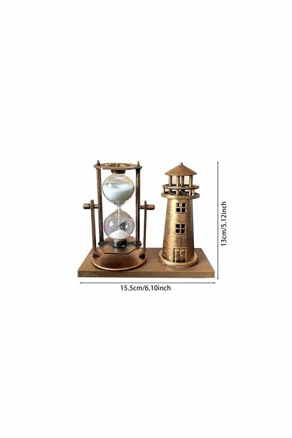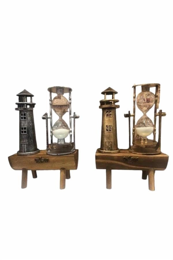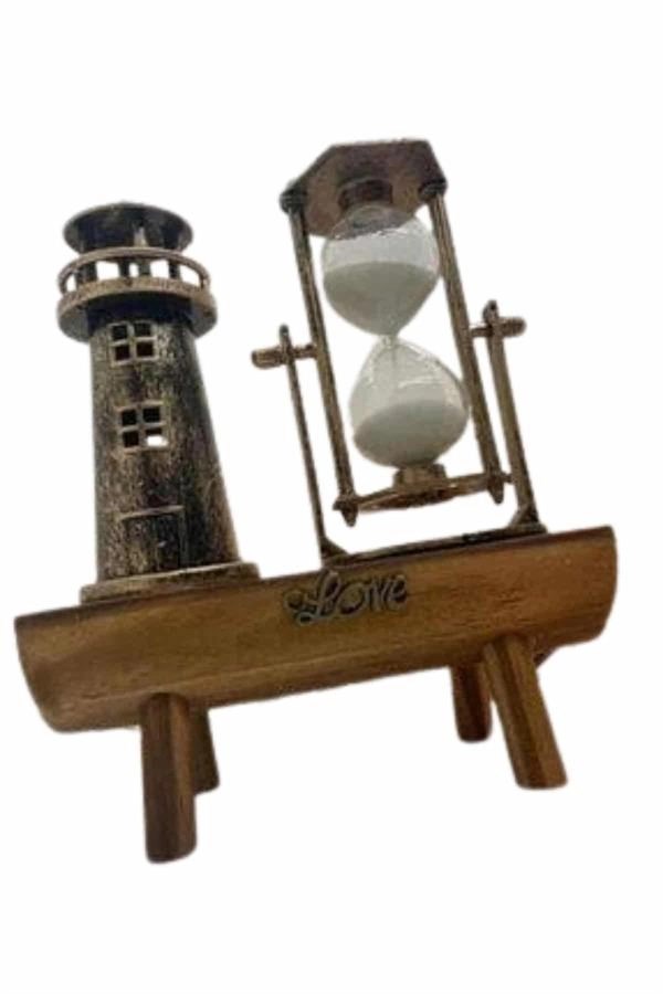 Ahşap Kum Saati Ve Deniz Feneri Figürü Bir Arada – Ev & Ofis Dekorasyonu