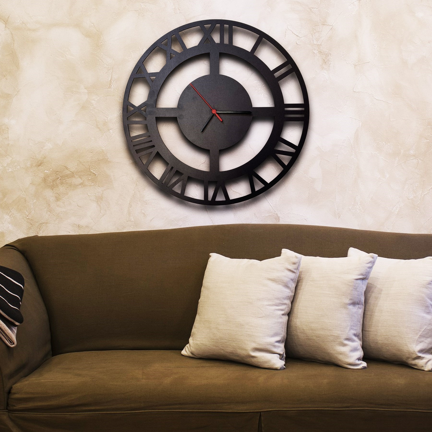 Dekoratif Metal Görünümlü Ahşap Mdf Duvar Saati