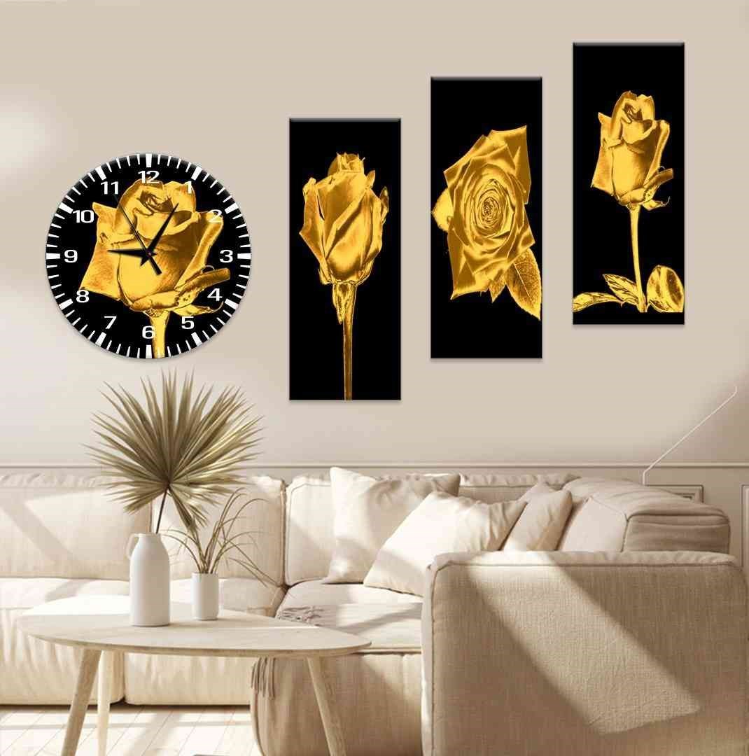 Evimona 4 Parça Çiçek Temalı Mdf Saatli Tablo Ds-075