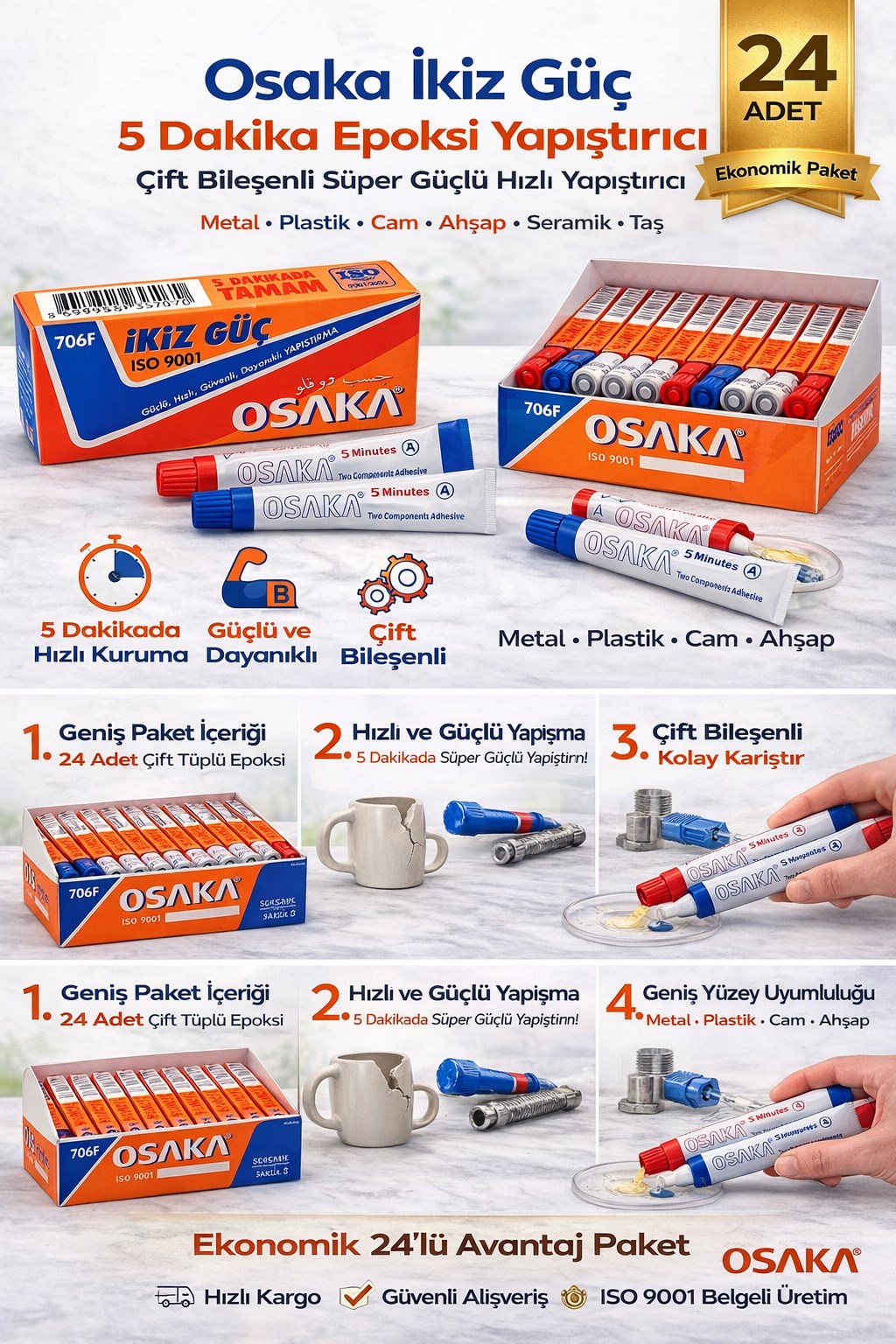 • Hızlı etki ve sağlam tutuş Kullanım Alanları: