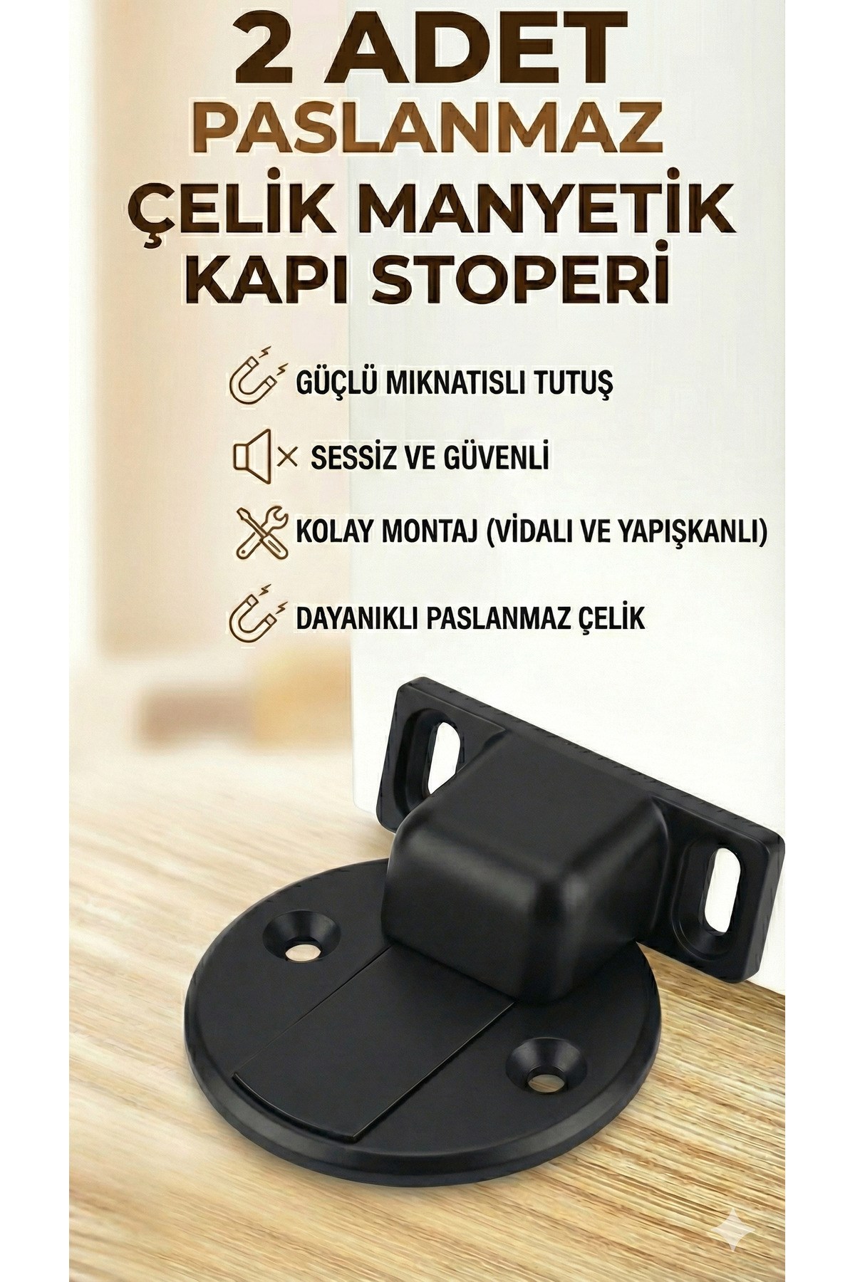 Güçlü Manyetik Kapı Stoperi – (2 ADET) Paslanmaz Çelik SİYAH , Modern ve Şık Tasarım