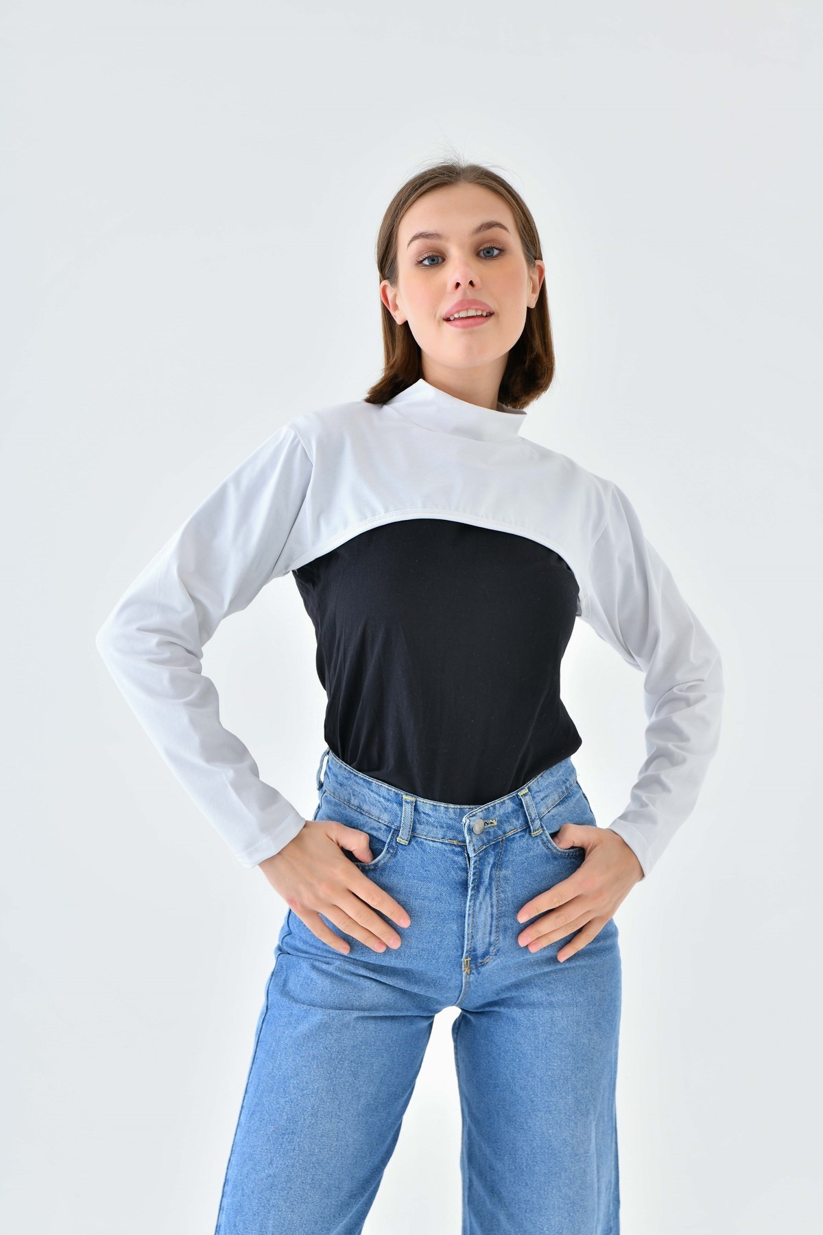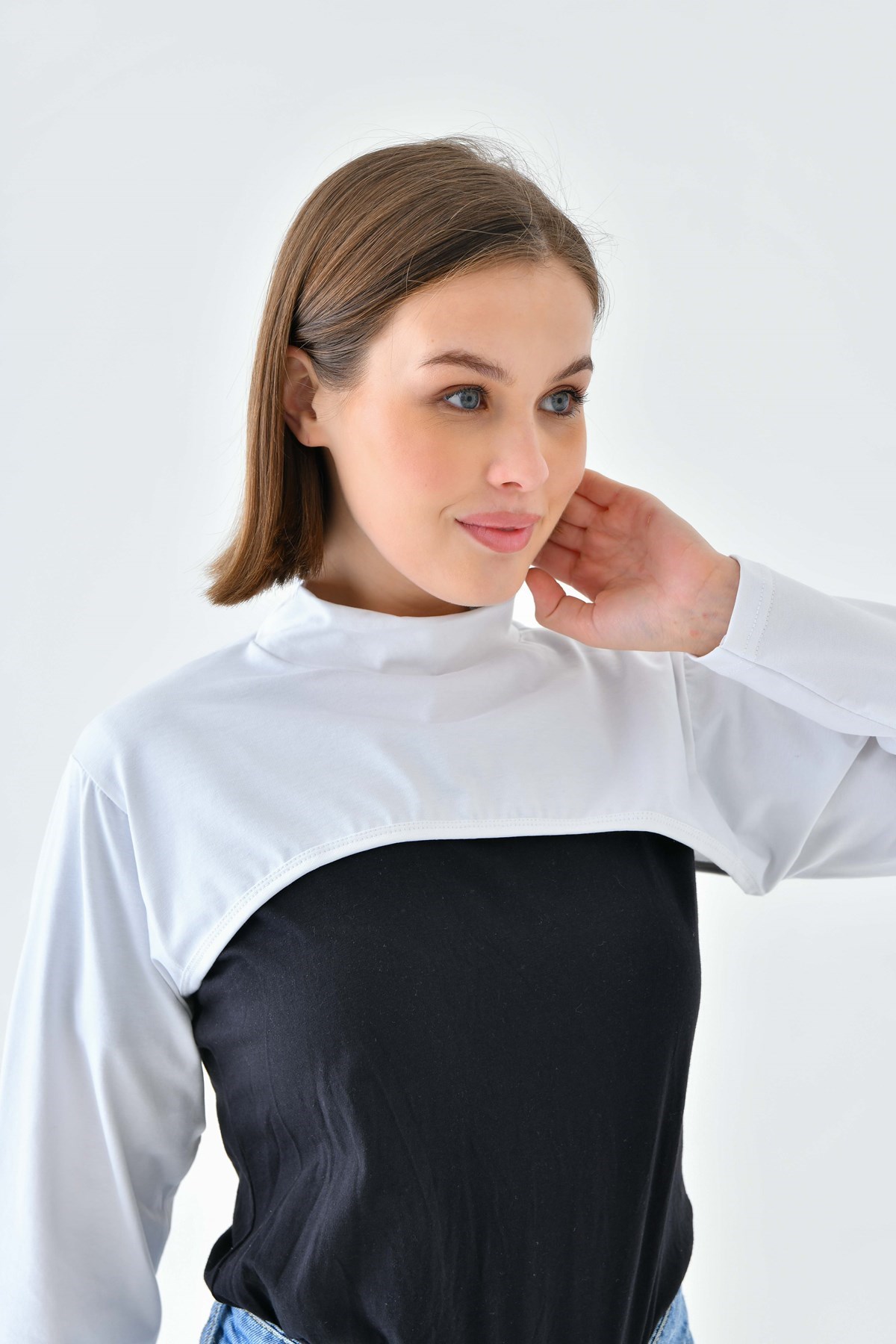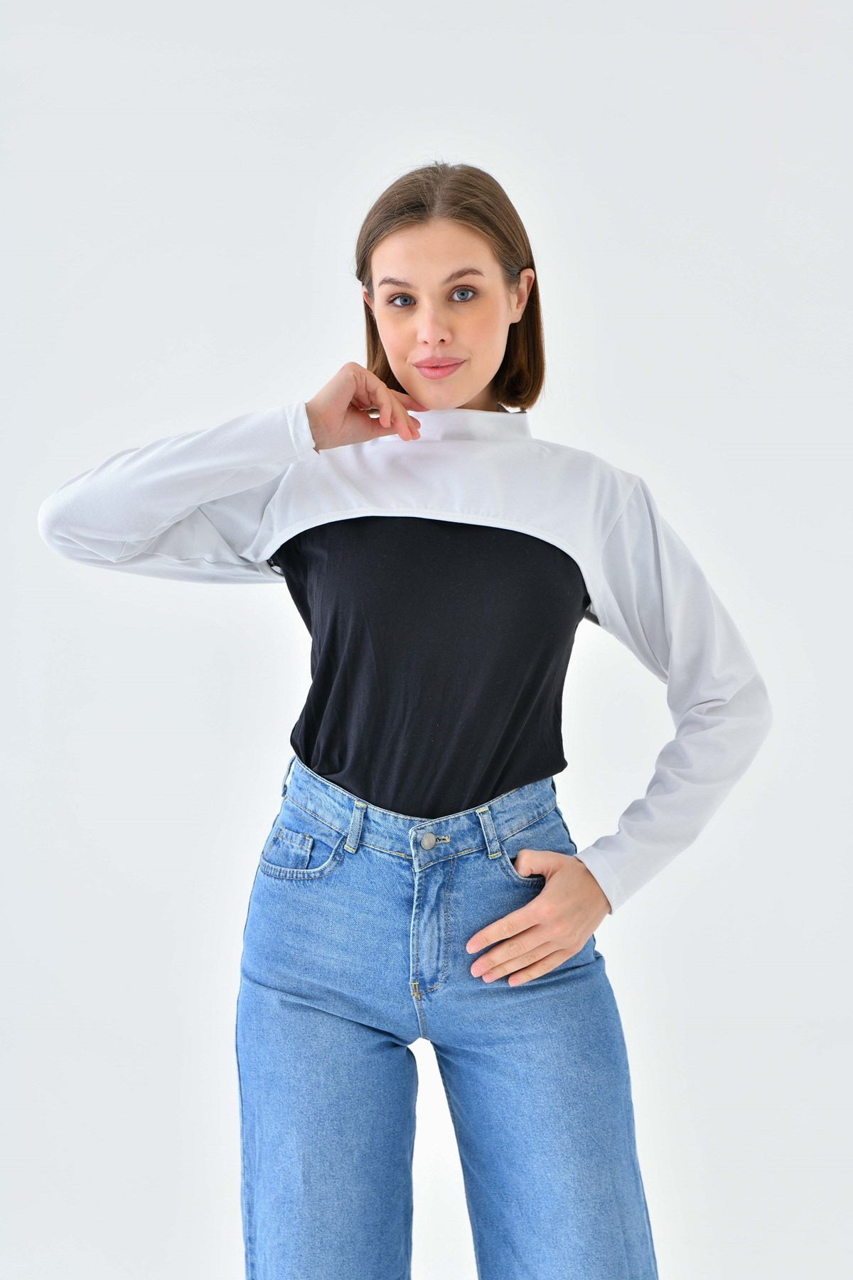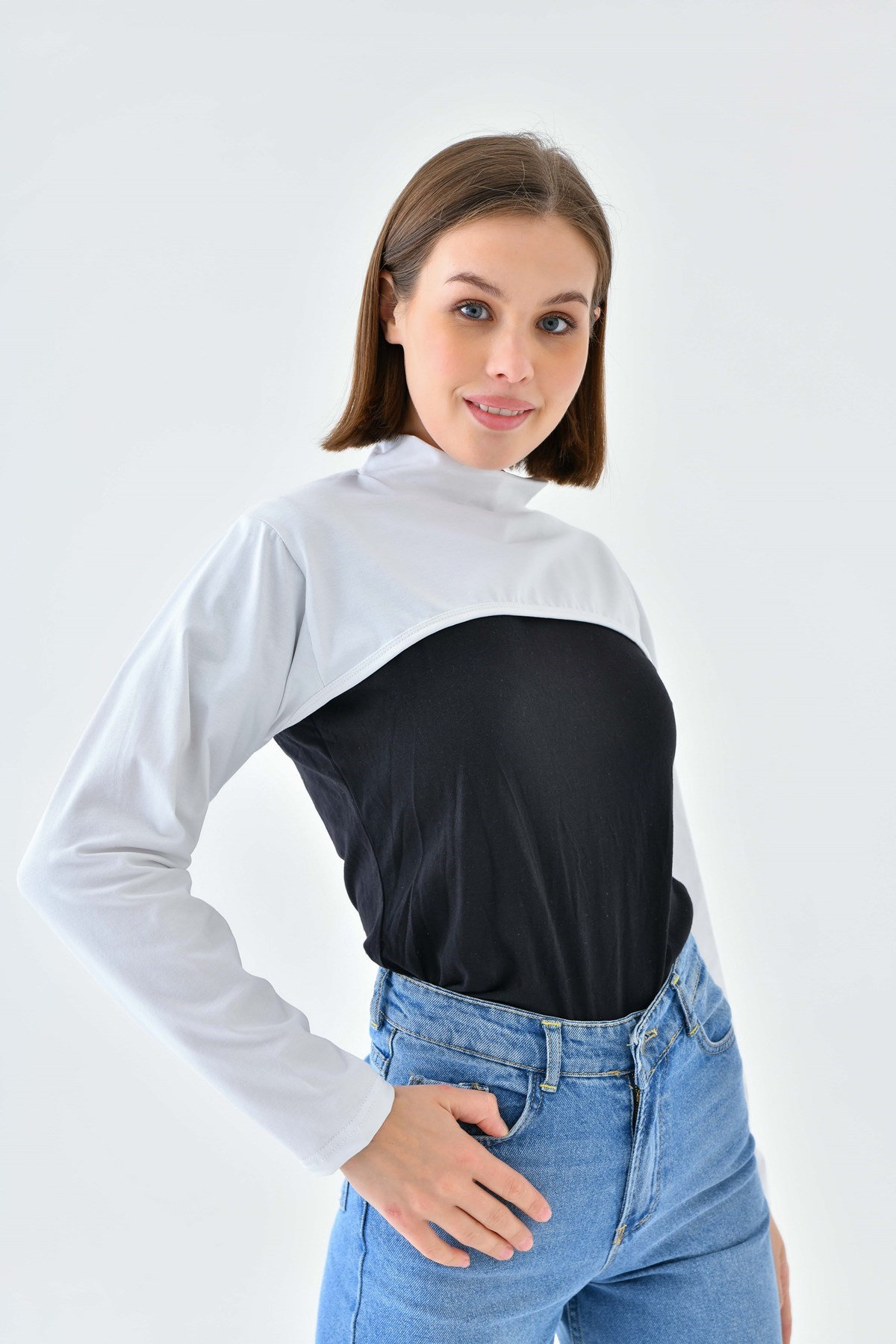 Beyaz Yüksek Kaliteli İslami Kol Boyun Örtüsü, Güneş Koruyucu Kol Örtüsü, Kol Boyun Örtüsü, Bolero, Balıkçı Yaka Kol Boyun Örtüsü