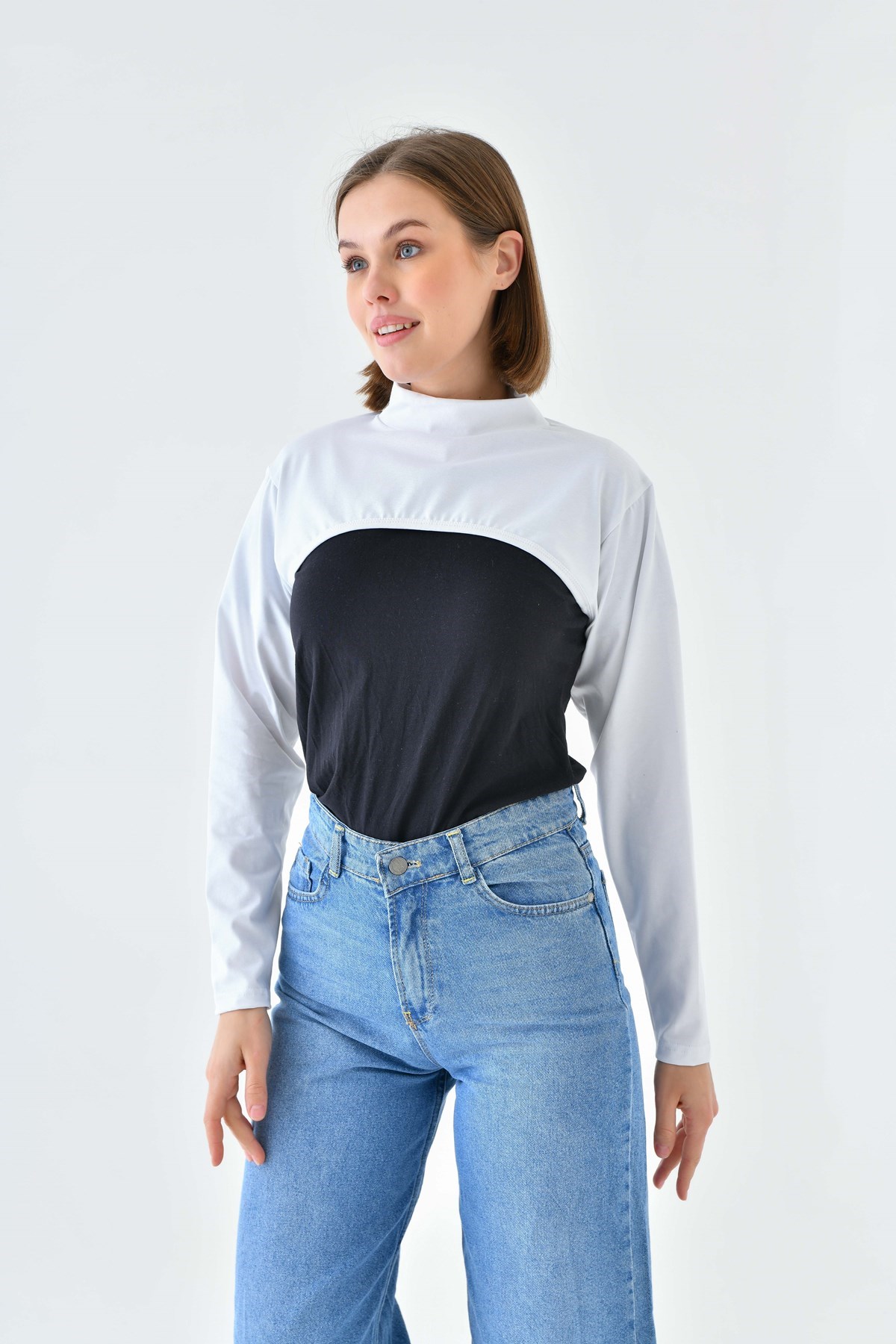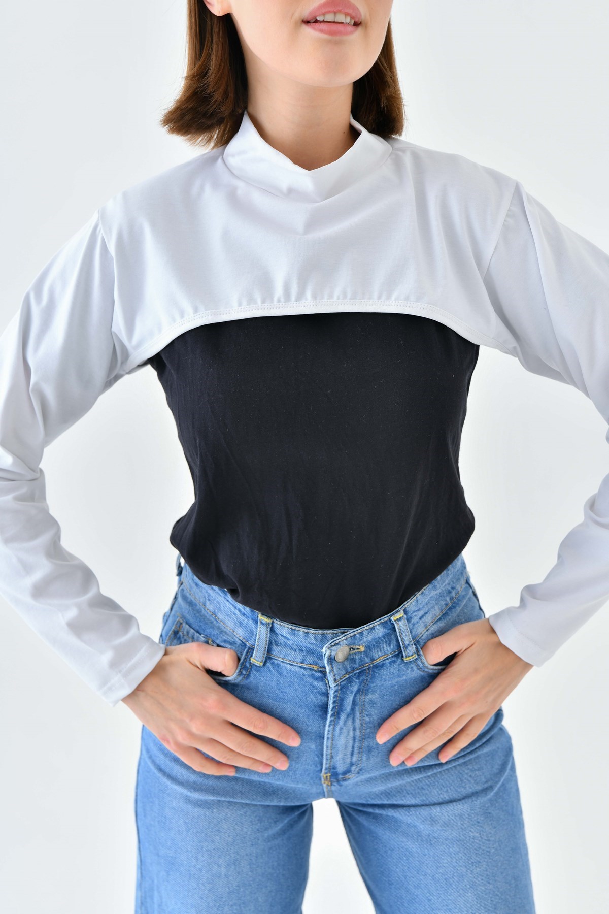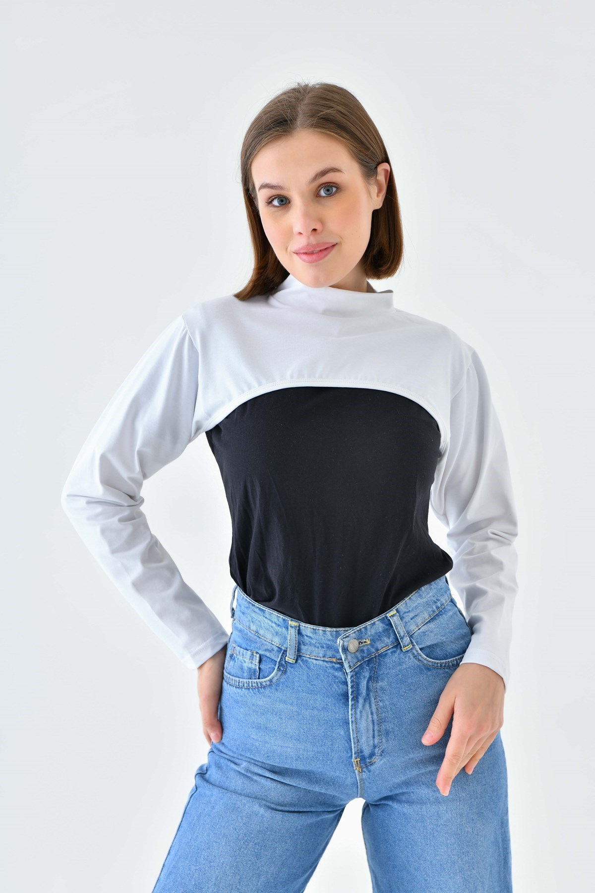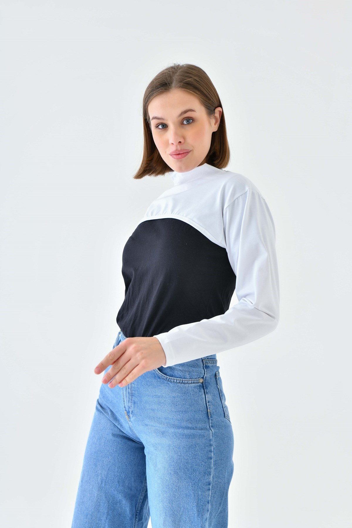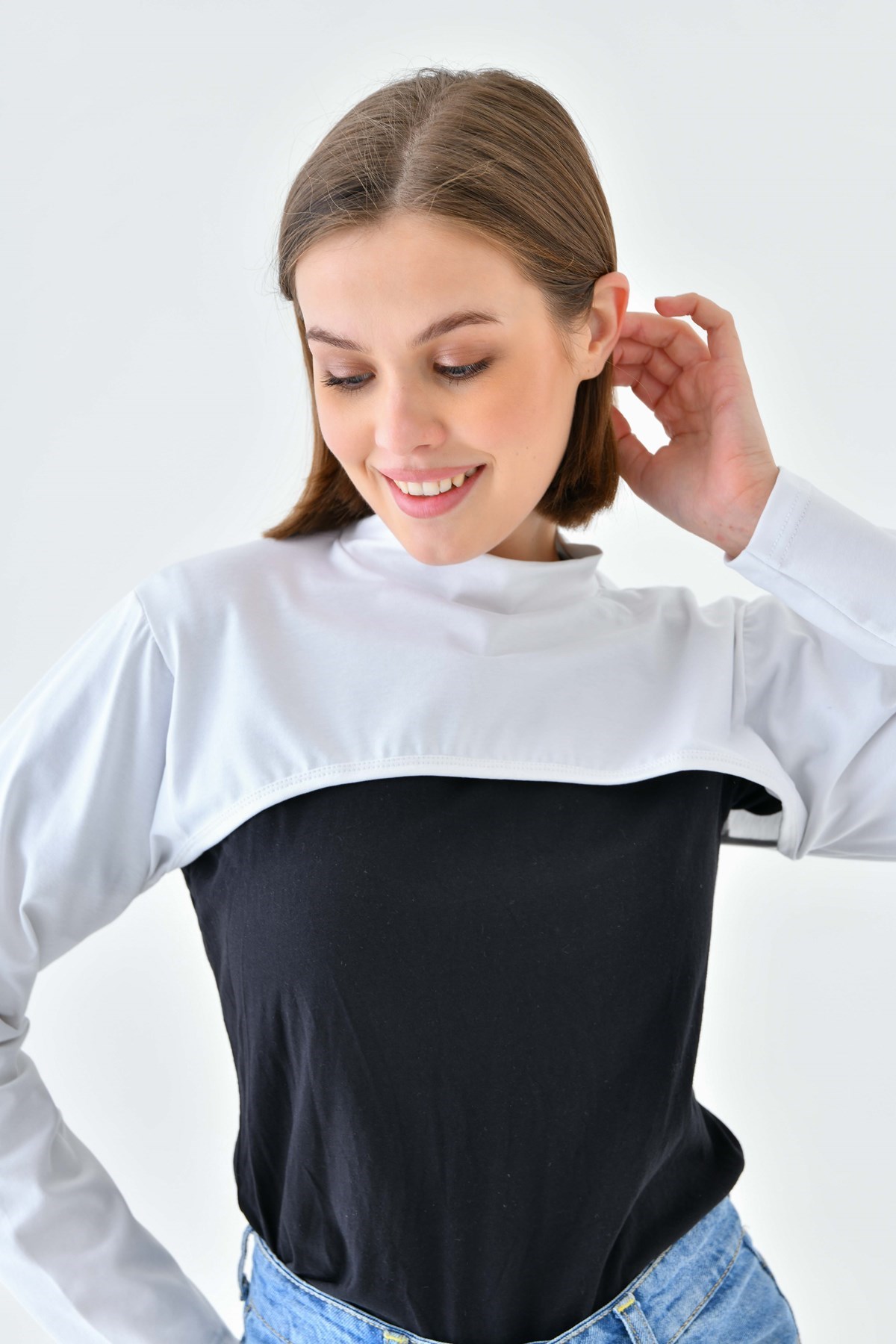 Beyaz Yüksek Kaliteli İslami Kol Boyun Örtüsü, Güneş Koruyucu Kol Örtüsü, Kol Boyun Örtüsü, Bolero, Balıkçı Yaka Kol Boyun Örtüsü