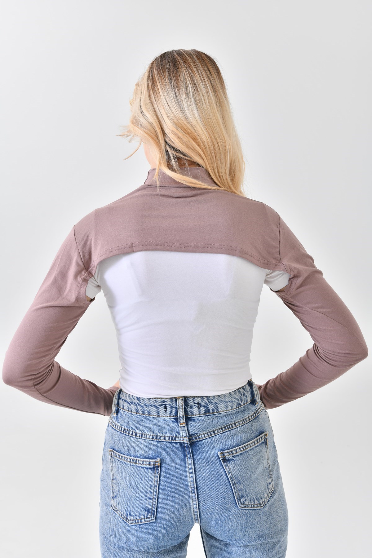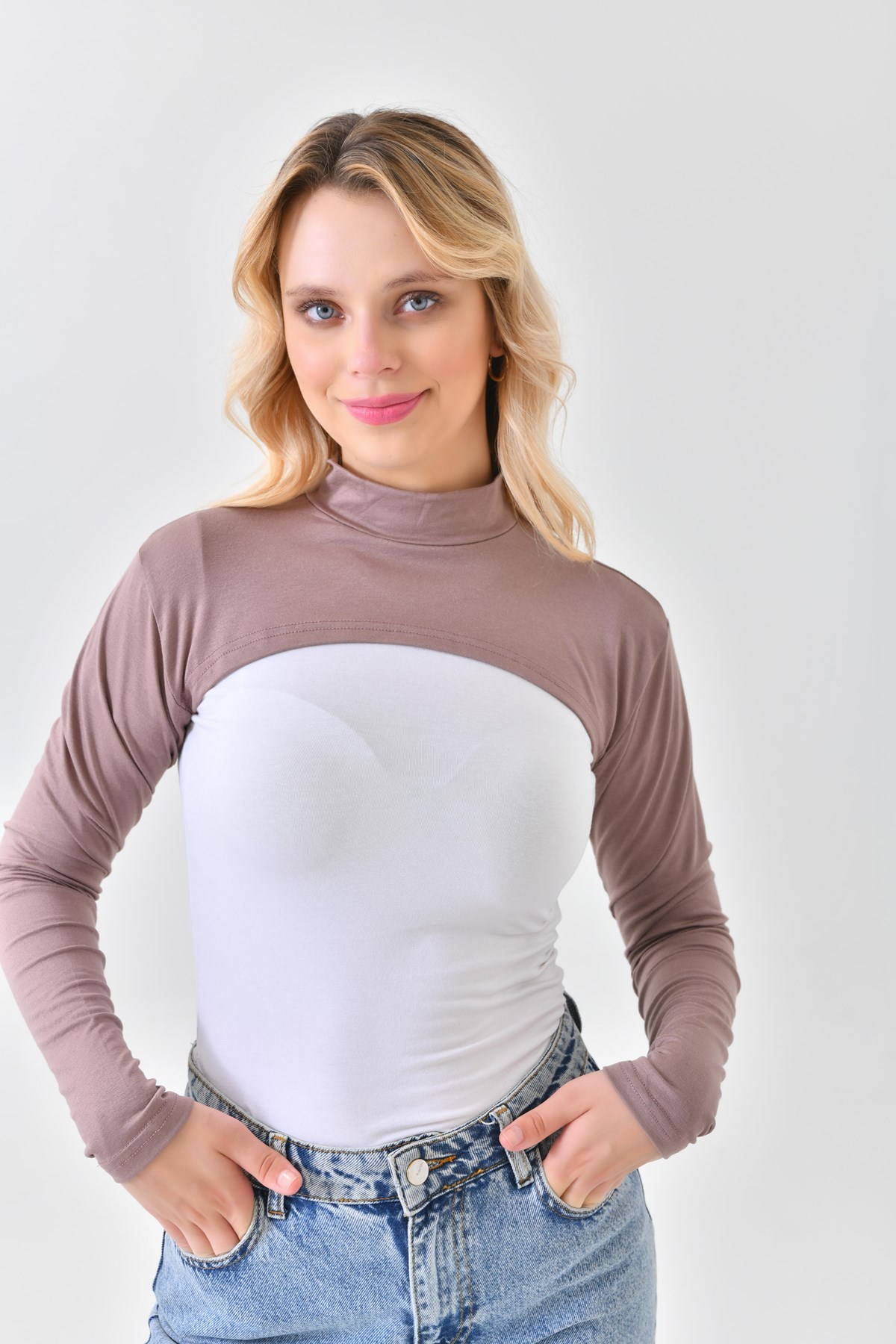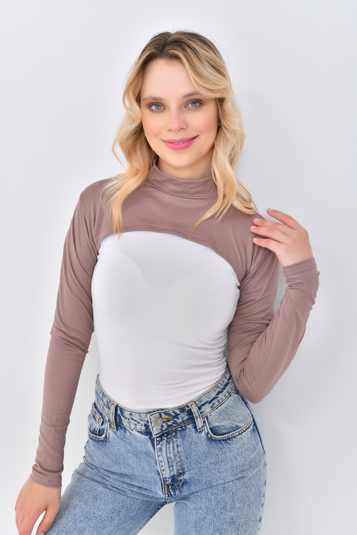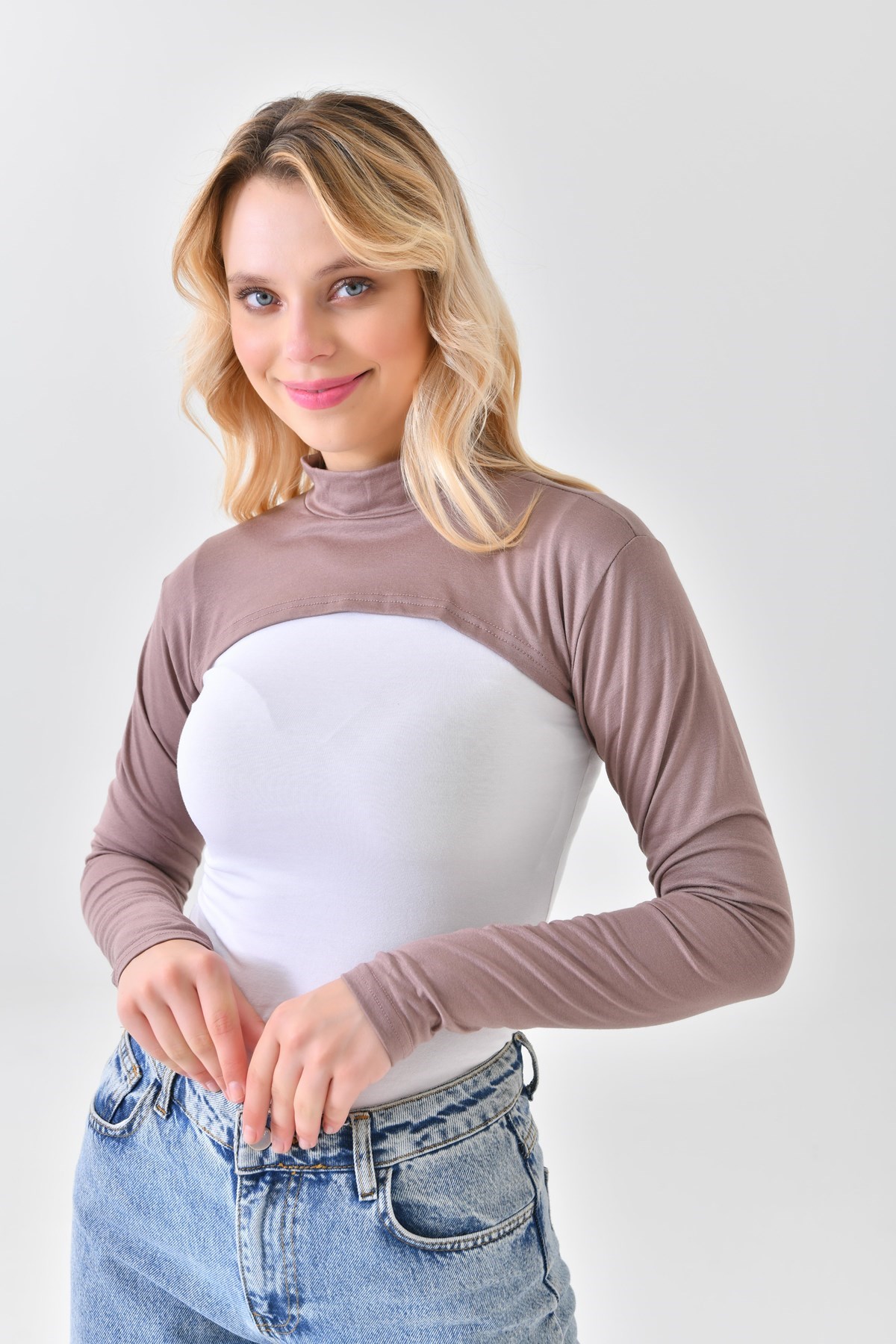 Kahverengi yüksek kaliteli islam kol boyun kapağı, güneş koruyucu kol kapağı, kol boyun kapağı, Bolero, balıkçı yaka kol boyun kapağı, üniforma için