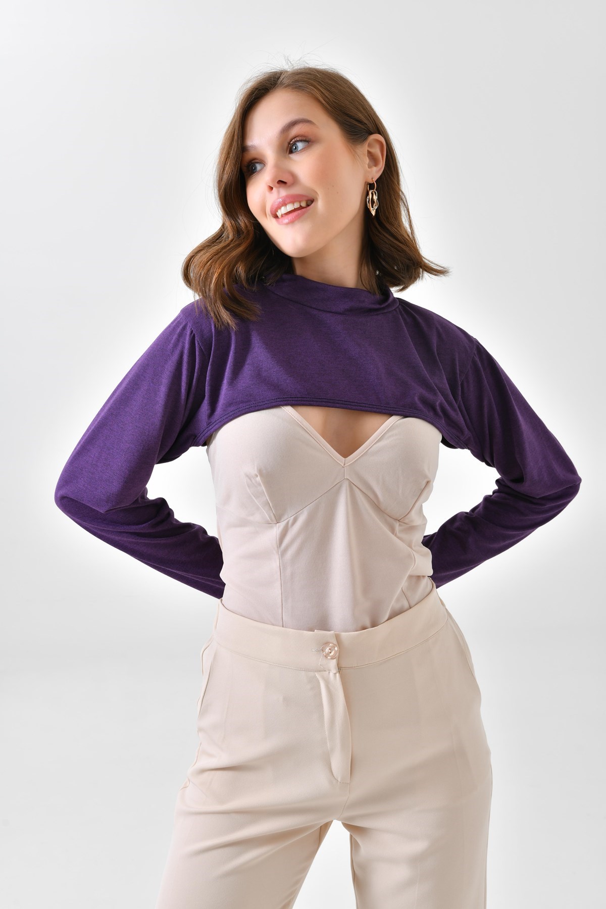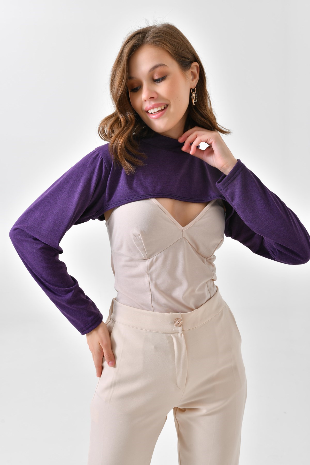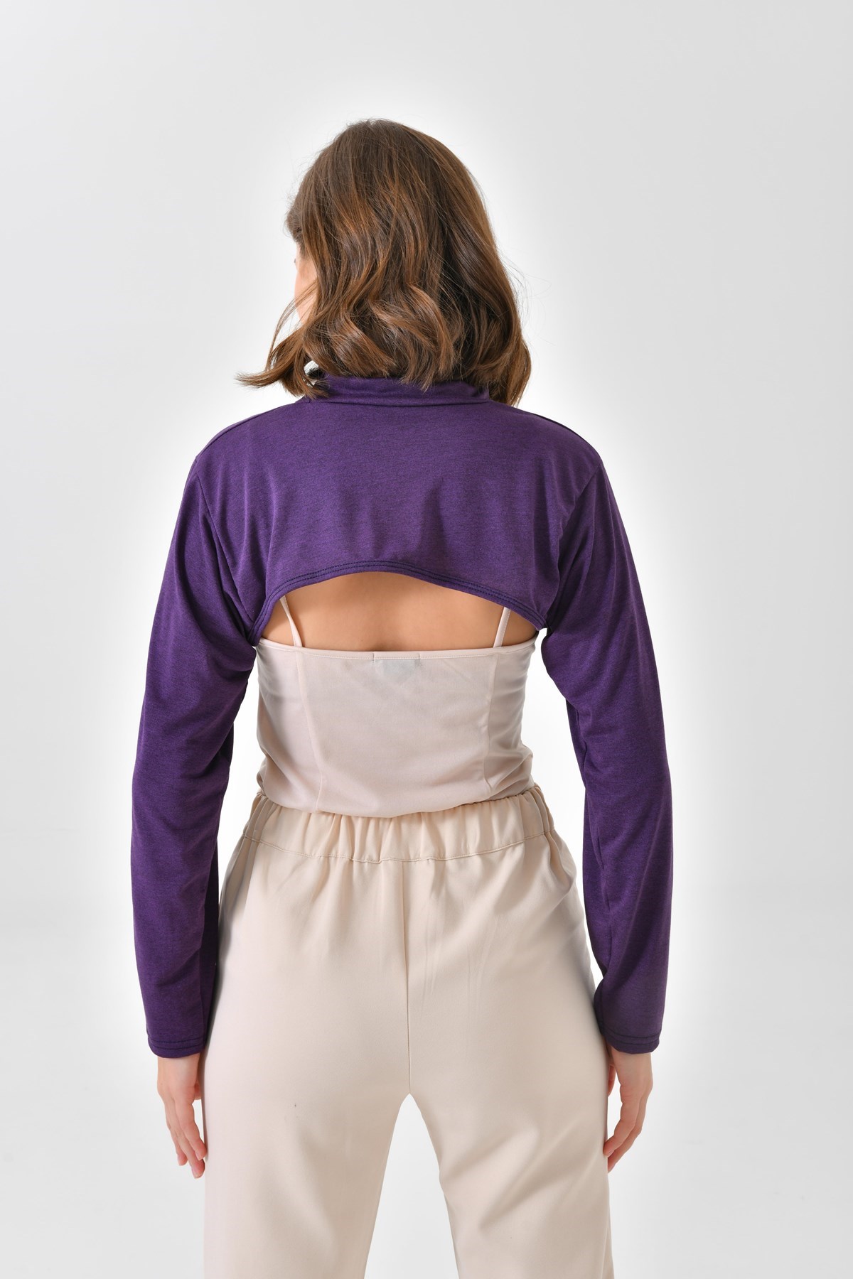 Mor Yüksek Kaliteli İslami Kol Boyun Örtüsü, Güneş Koruyucu Kol Örtüsü, Kol Boyun Örtüsü, Bolero, Balıkçı Yaka Kol Boyun Örtüsü