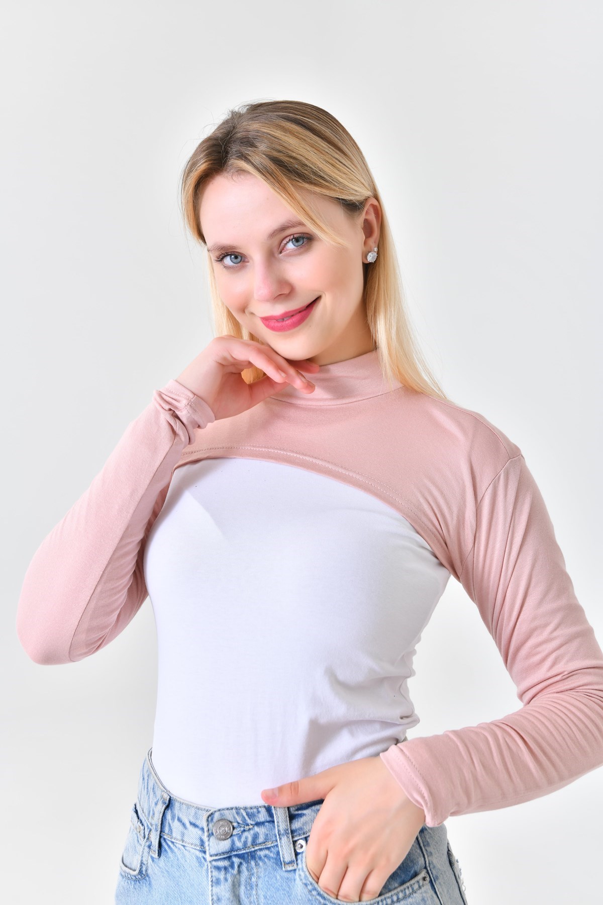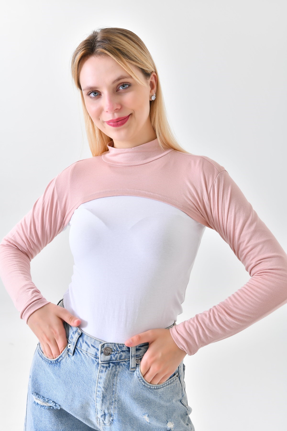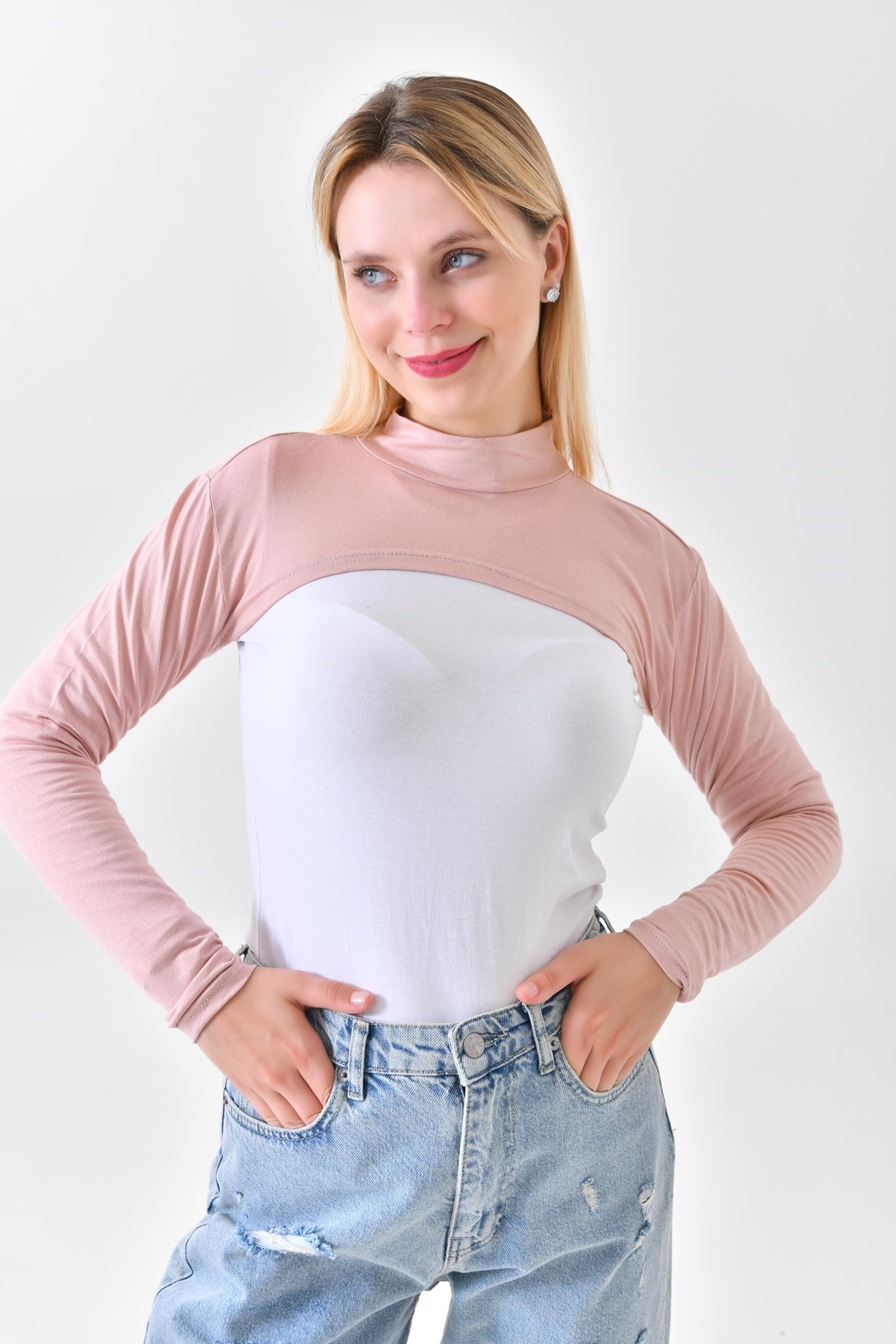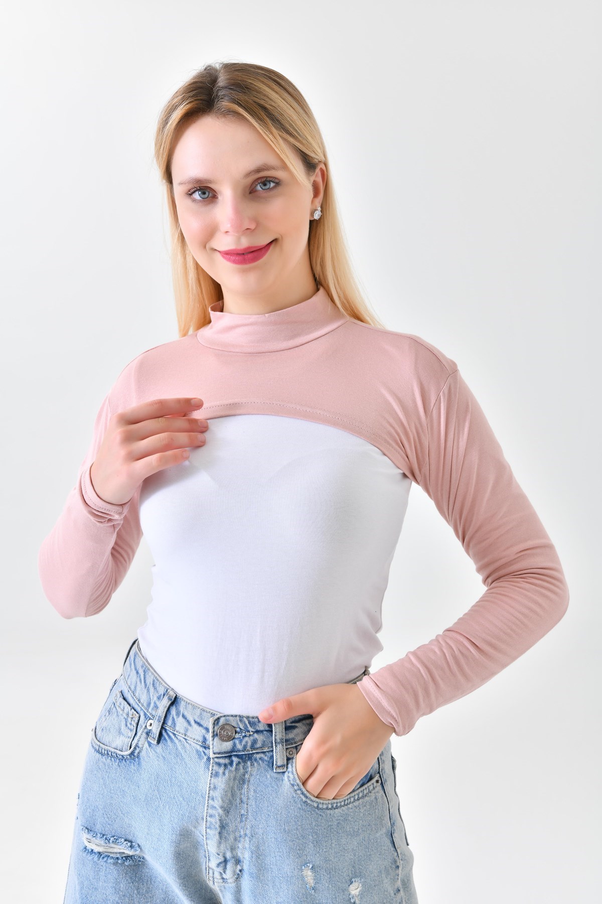 Pudra Yüksek Kaliteli İslami Kol Boyun Örtüsü, Güneş Koruyucu Kol Örtüsü, Kol Boyun Örtüsü, Bolero, Balıkçı Yaka Kol Boyun Örtüsü, Üniforma için Boyunluklu Kolluk