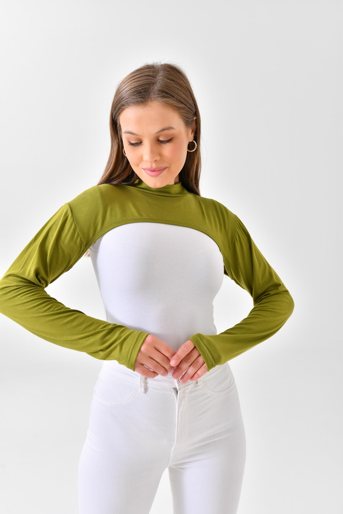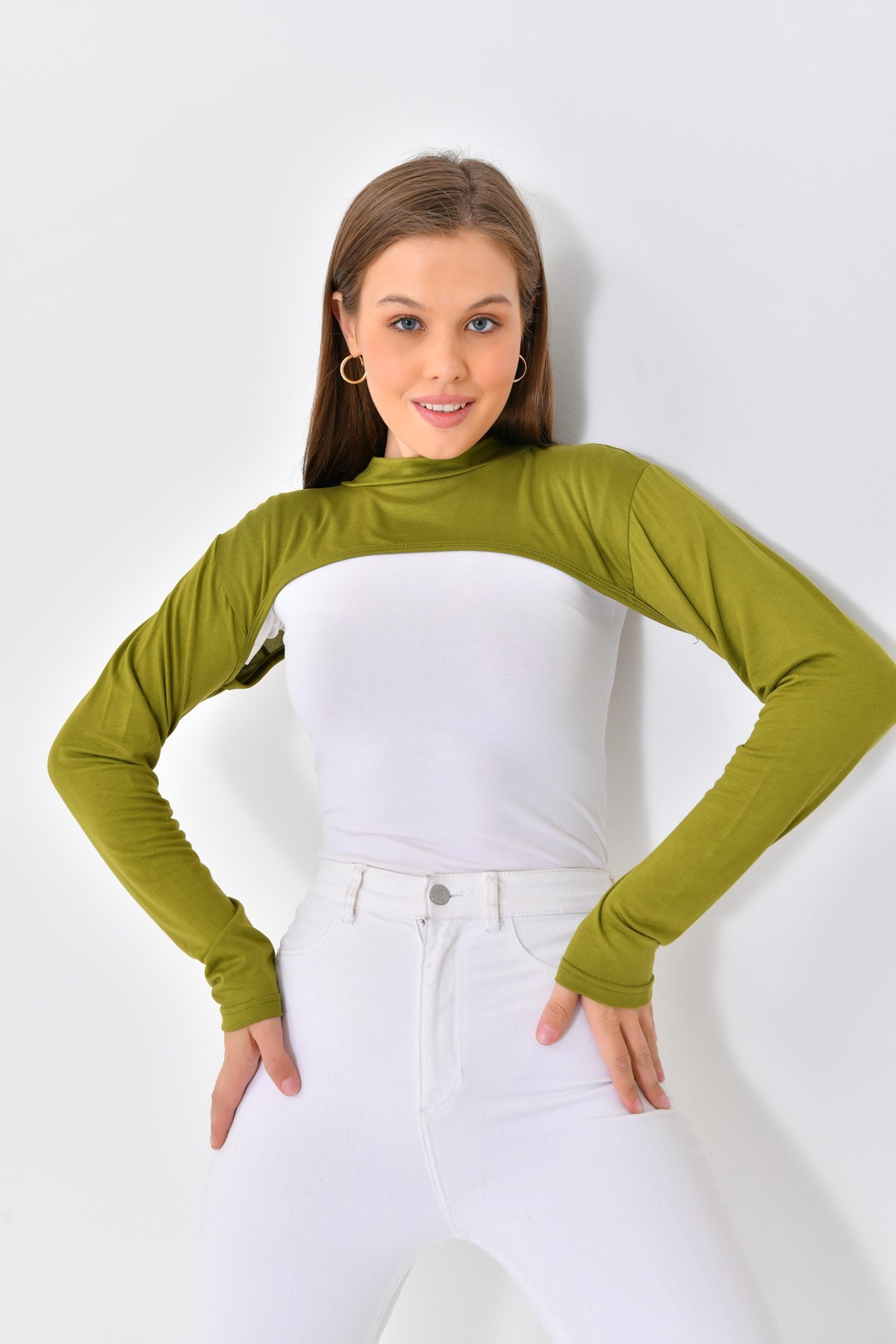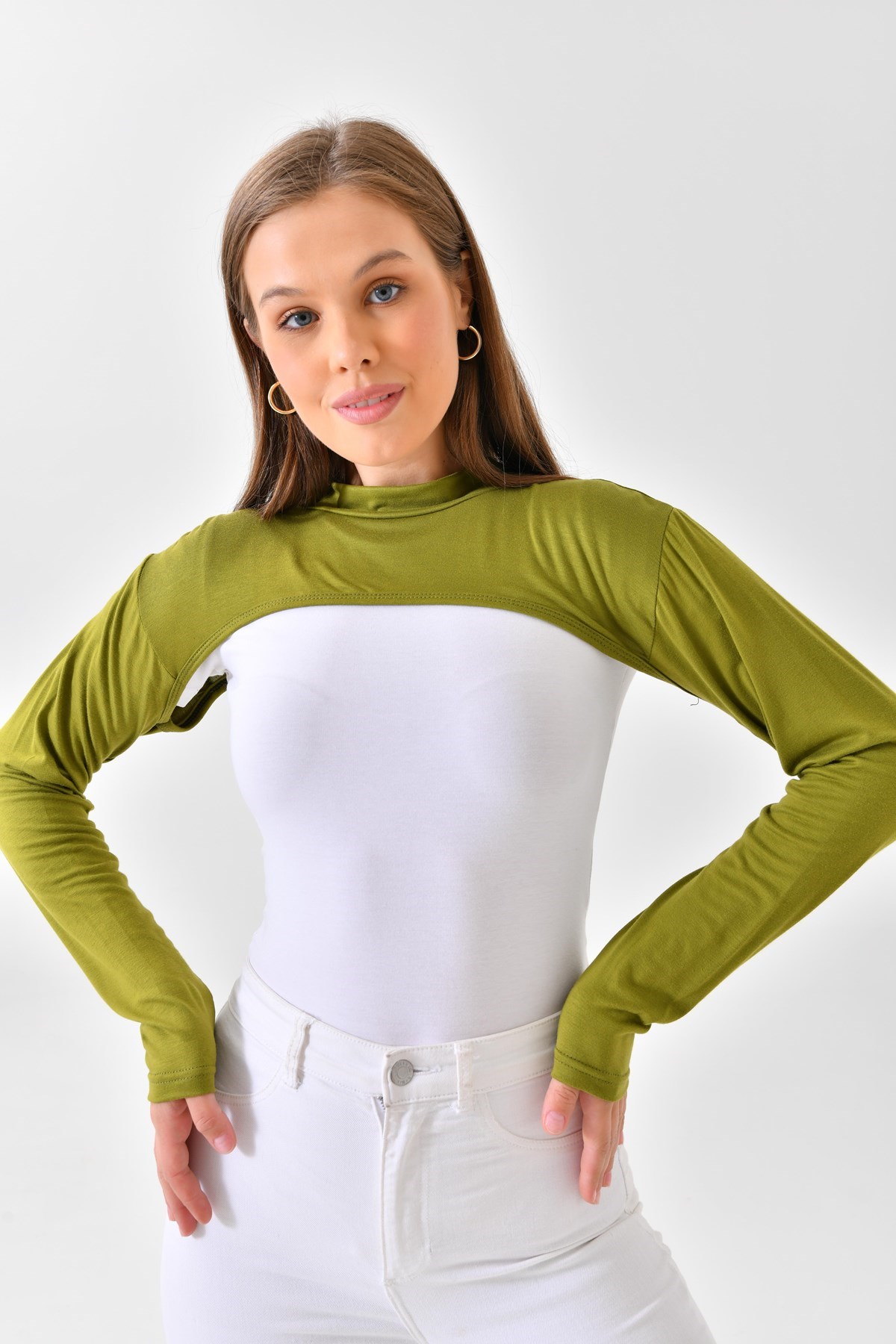 Olive Yüksek Kaliteli İslami Kol Boyun Örtüsü, Güneş Koruyucu Kol Örtüsü, Kol Boyun Örtüsü, Bolero, Balıkçı Yaka Kol Boyun Örtüsü