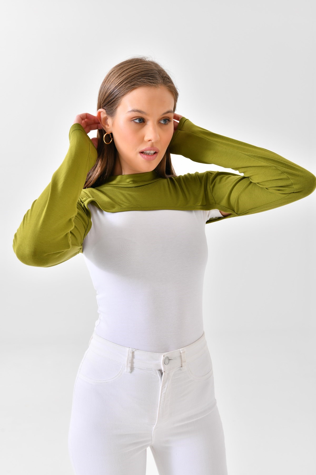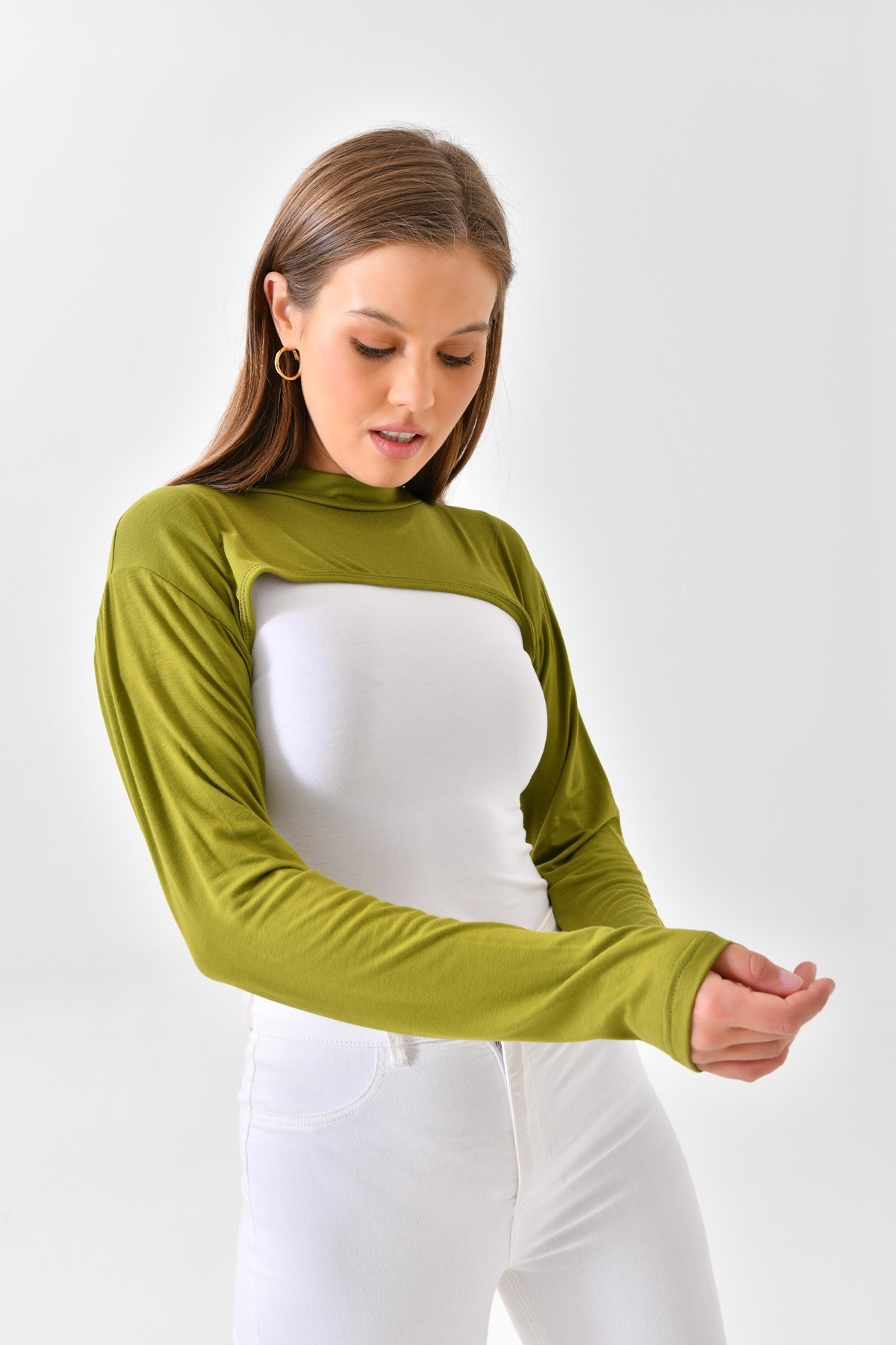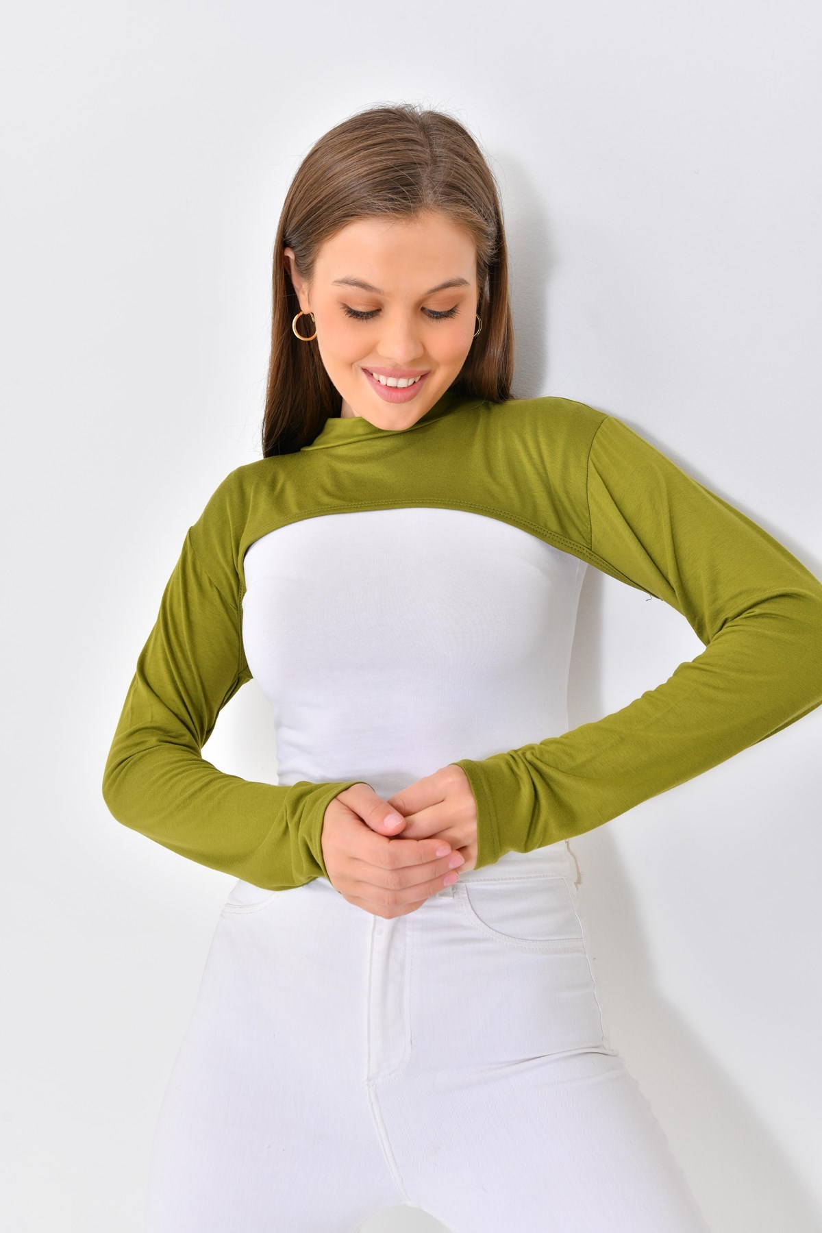 Olive Yüksek Kaliteli İslami Kol Boyun Örtüsü, Güneş Koruyucu Kol Örtüsü, Kol Boyun Örtüsü, Bolero, Balıkçı Yaka Kol Boyun Örtüsü