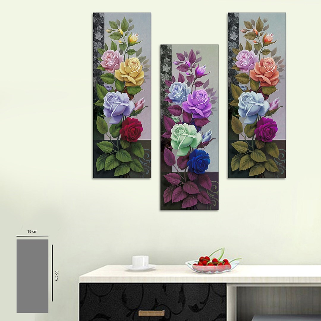 3 Parçalı Renkli Güller Mdf Tablo - T-3Dikey-19 19X40