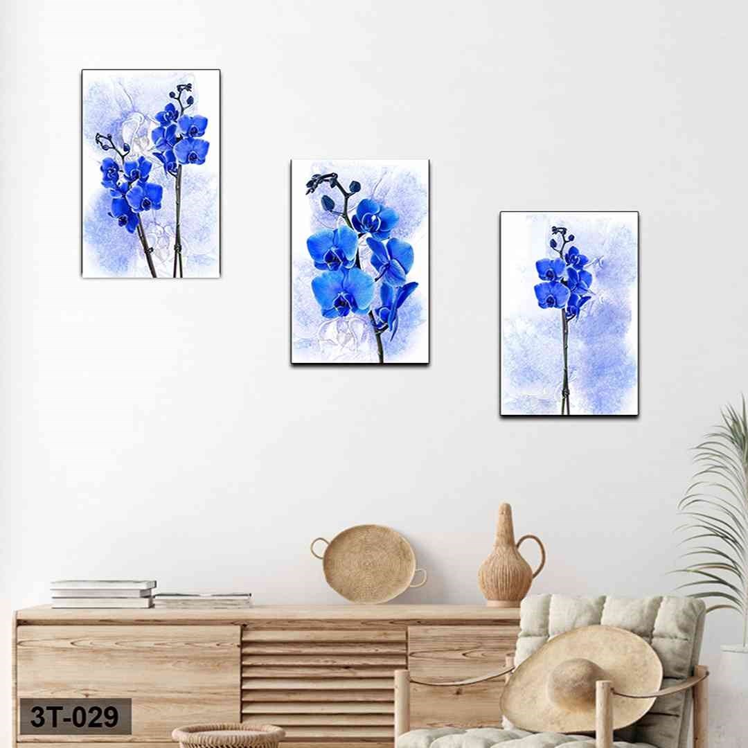 3 Parça Mavi Orkide Mdf Tablo - 3T-029 30X40