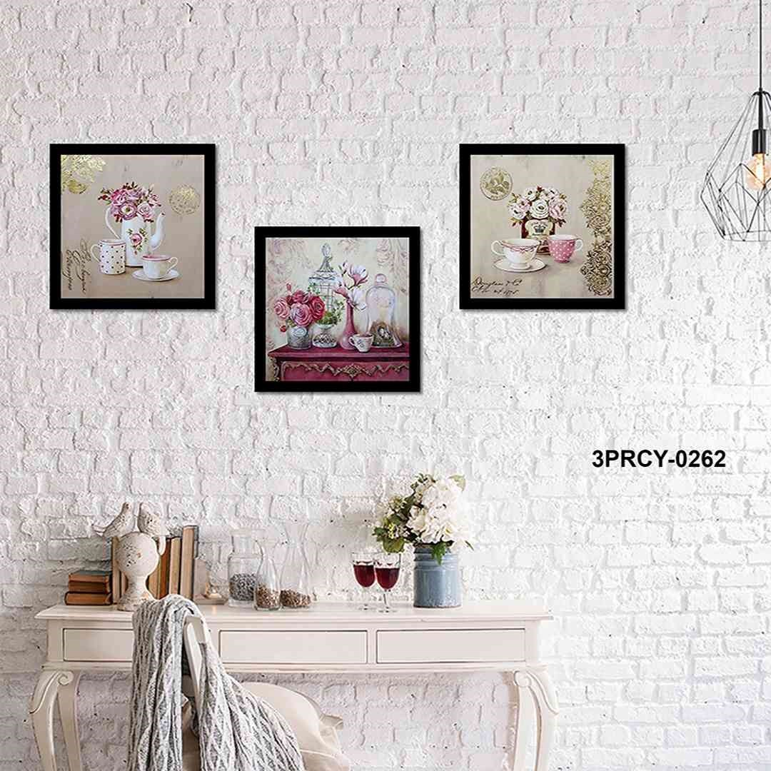 3 Parça Çiçekli Tasarım Mdf Tablo - 3Prcy-0262 30X30