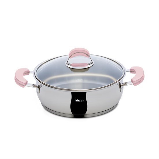 Monaco 24 cm Pembe Basık Çelik Tencere - 31811
