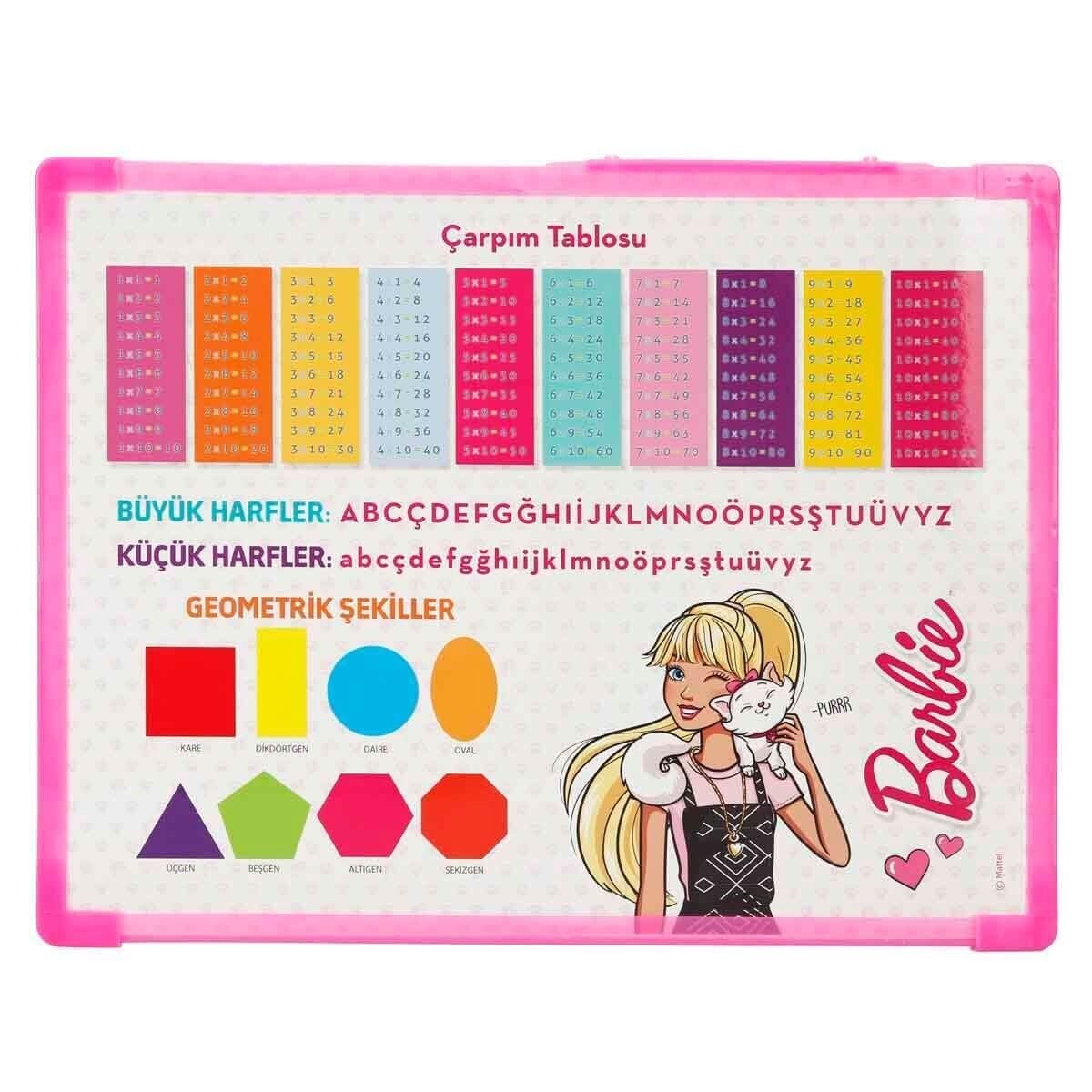 Üstelik yazı tahtasının ön yüzünde bulunan abaküs sayıları öğretirken, saat ise çocuklara zamanı öğretecektir. Arka yüzünde bulunan geometrik şekiller, çarpım tablosu, küçük ve büyük harfler ile çocukların eğlenerek öğrenmesine yardımcı olur. Barbie ile ders zamanı!