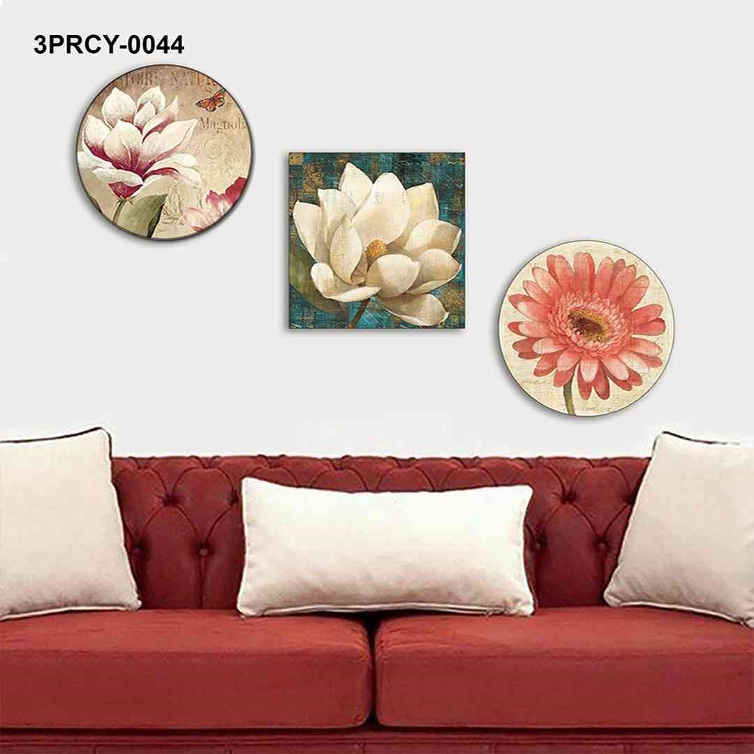 3 Parça Dekoratif Çizim Çiçek Desenler Mdf Tablo - T-3Prcy-0044 30X30
