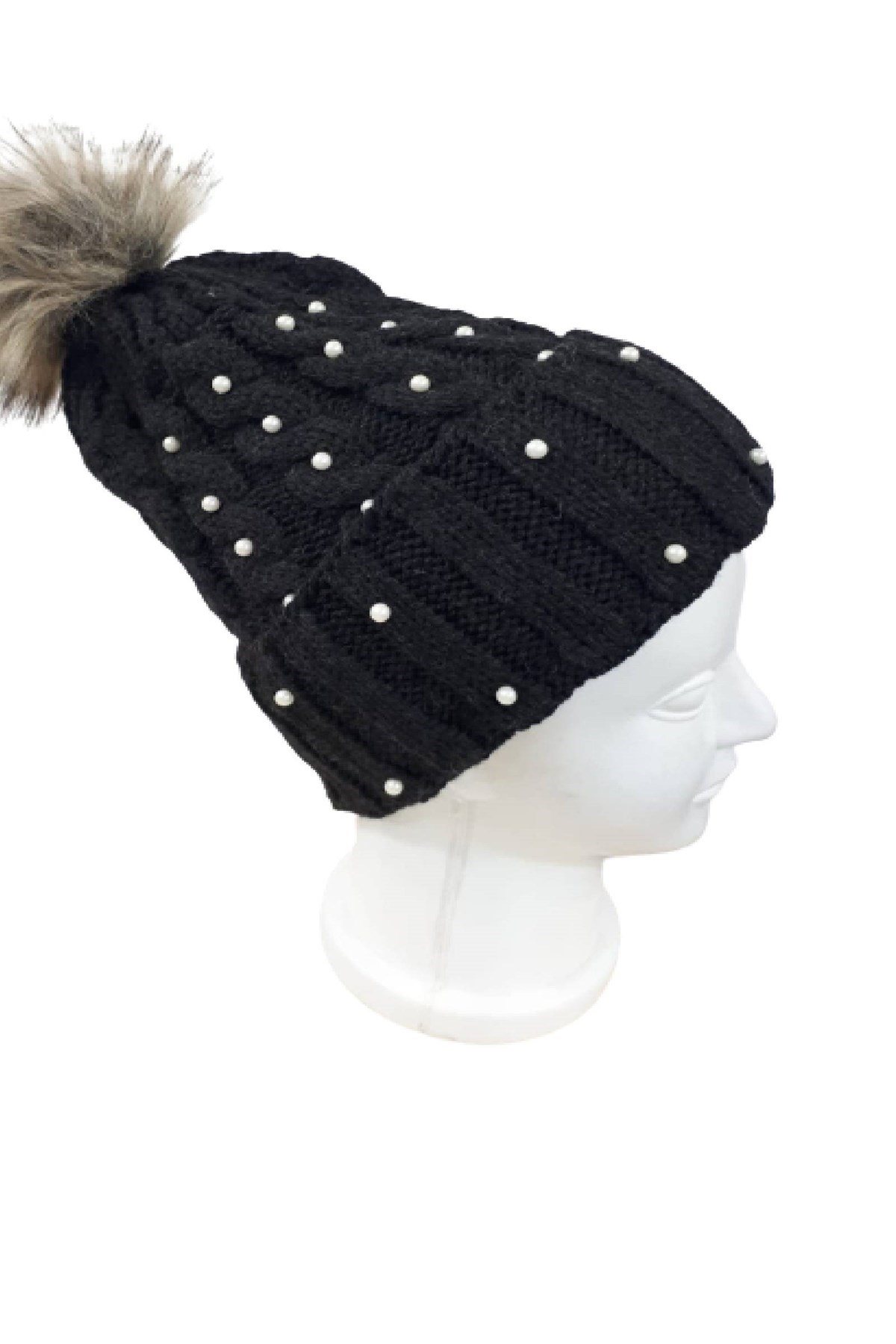 Edwol Kadın İncili Tüylü Bere Koyu Gri