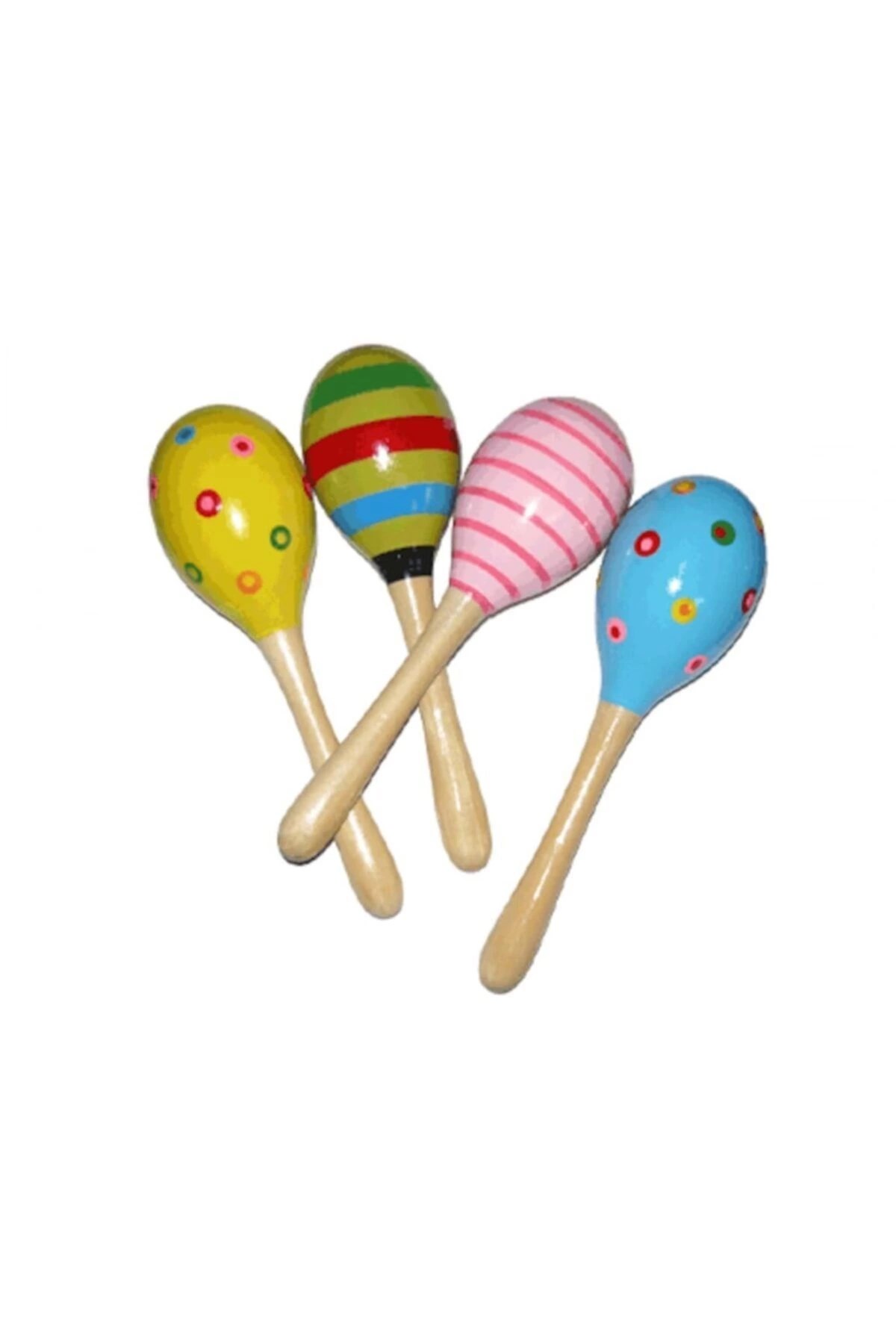 Renkli Ahşap Marakas Boncuklu Ritim Çıngırağı Çocuklar İçin Eğitici Ve Eğlenceli Müzik Aleti (4 Adet)