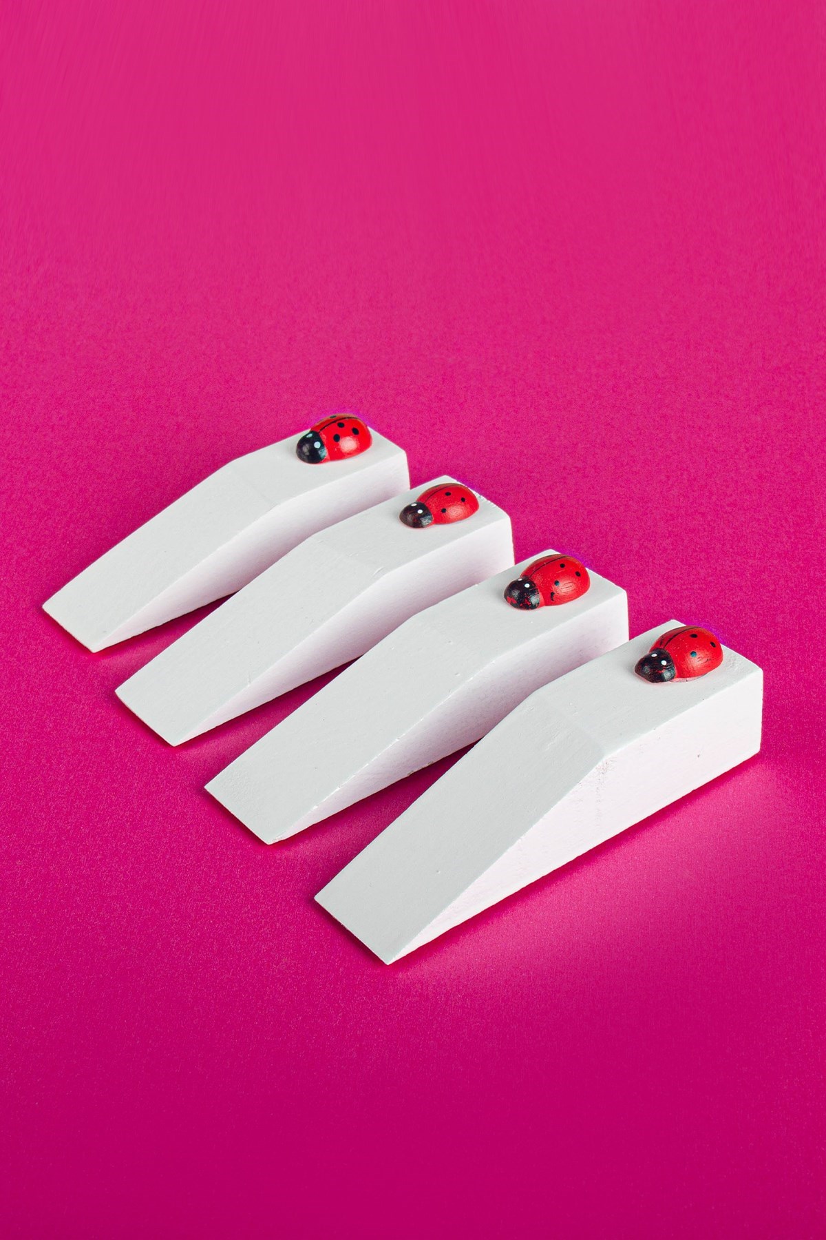 4 Adet İdeal Ahşap Uğur Böcekli Kapı Stoperi - Beyaz