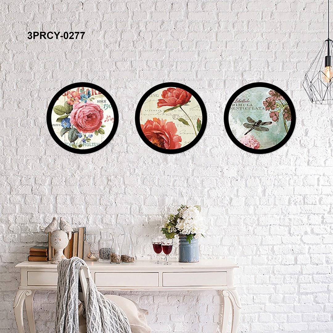 3 Parça Retro Çiçek Tasarım Mdf Tablo - 3Prcy-0277 30X30