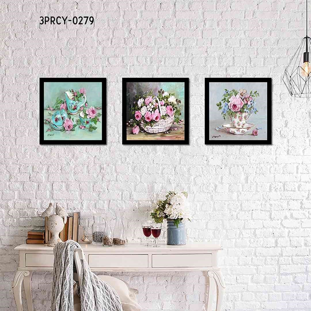 3 Parça Çiçekli Tasarım Mdf Tablo - 3Prcy-0279 30X30