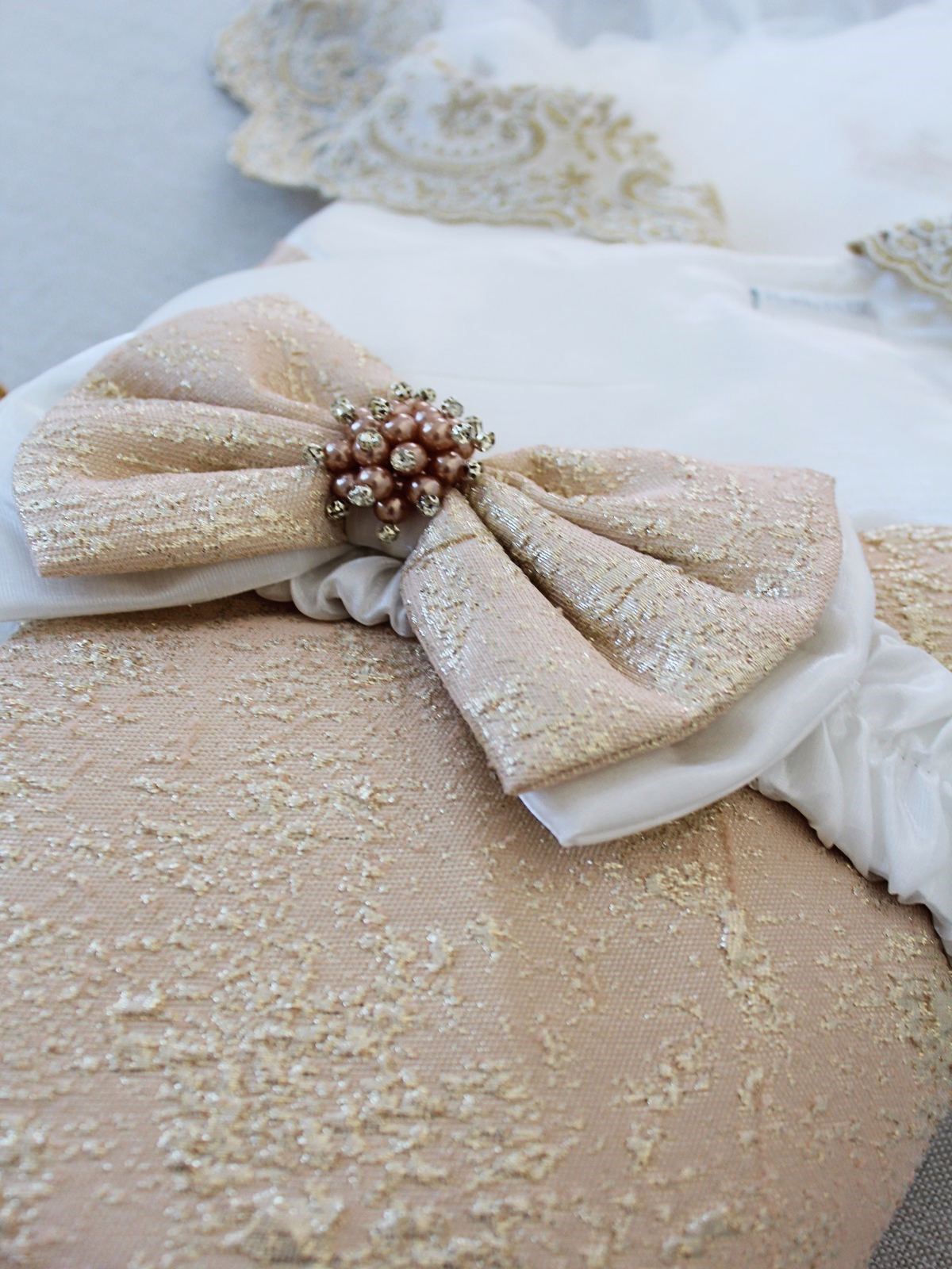 Yenidoğan Gold Zümrüt Taşlı Prizma Taç Nakışlı Lüks Duvaklı Kumru Kundak Bebek Battaniyesi
