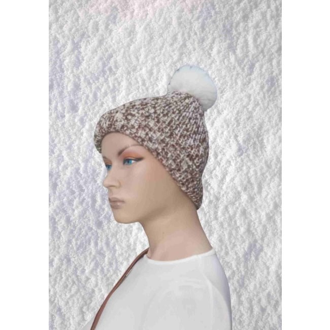 El Örgüsü Doğal Yün Ve Akrilik Karışımlı Sıcacık Kış Beresi Kahve-beyaz