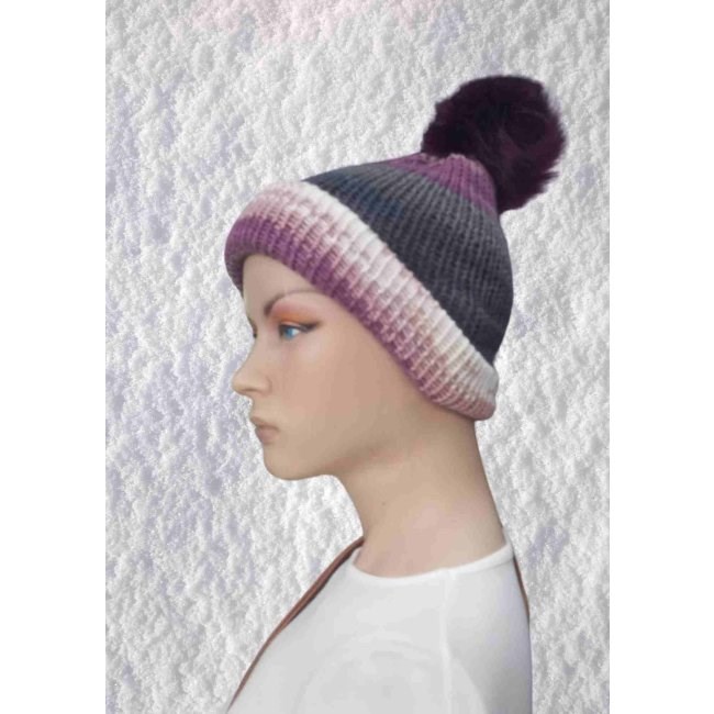 El Örgüsü Doğal Yün Ve Akrilik Karışımlı Sıcacık Kış Beresi Mor Gri Karışık Renk