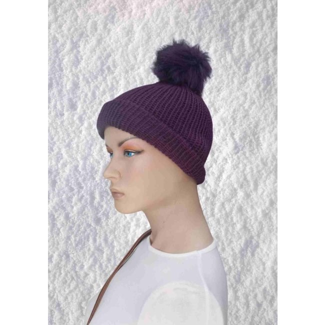 El Örgüsü Doğal Yün Ve Akrilik Karışımlı Sıcacık Kış Beresi Mürdüm Renk